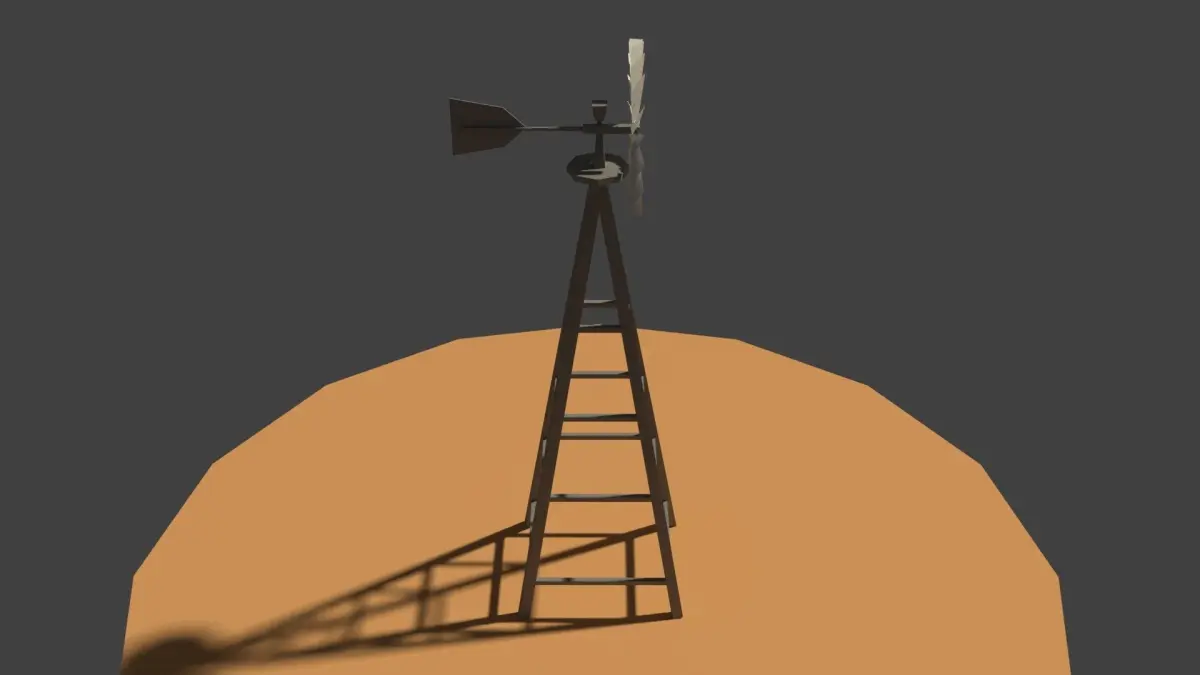 Water pumping low poly wind mill model. Parts that move are separated and can be rigged or animated. Feel free to separate and use objects individually.