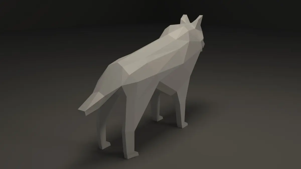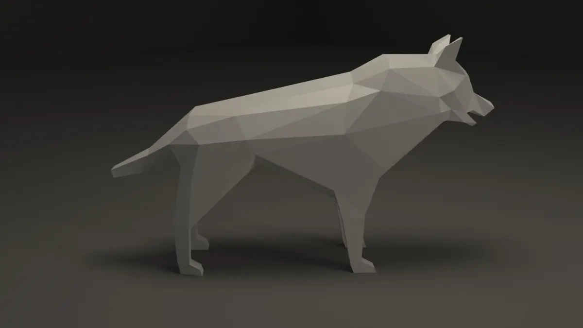 Low Poly Wolf 3D model ####################################################Sculpture inspired by geometric shapes of the wildlife animal.Basic material included.