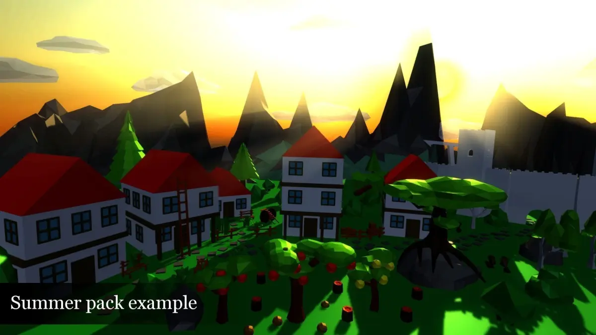 Most of assets have 2 or more LOD variants!! ~ 80 meshes of buildings ~ 94 meshes of trees ~ 37 meshes of wooden constructions elements ~ 6 floating islands ~ 17 meshes of mountains ~ 13 sky objects ~ 10 stones and crystals