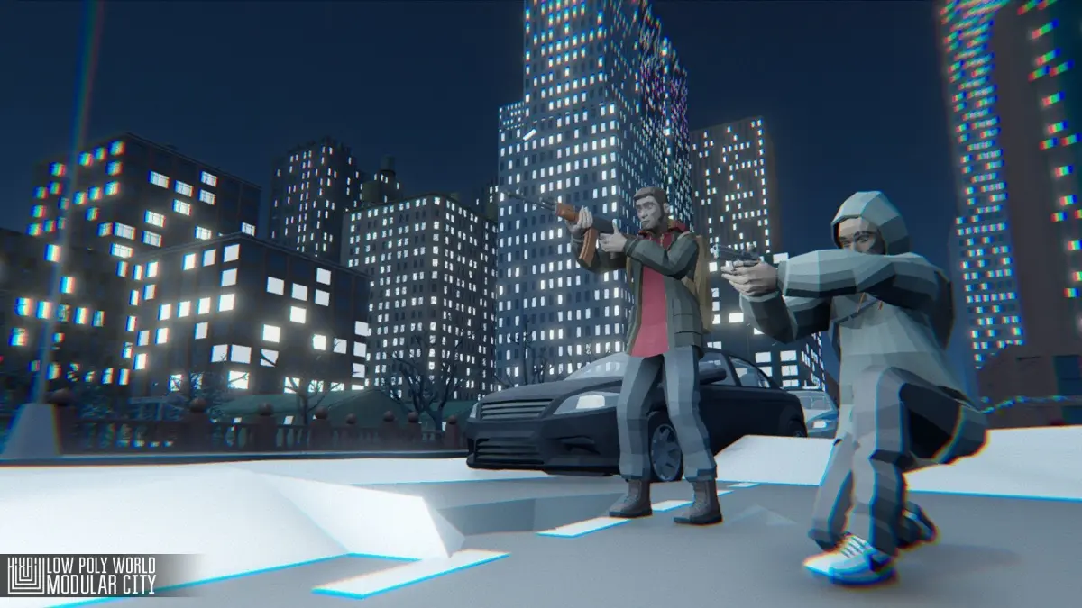 Mixaill studio presents a low-poly projectLOW POLY WORLD - MODULAR CITY This is a very big pack. Good solutions for you simple or hard games. All models stylization in low-poly style.Pack includes testing scene - Apocalyptic New YorkBut you can change this map or create another map: sunshine city, winter city, use buildings for background or create another maps.