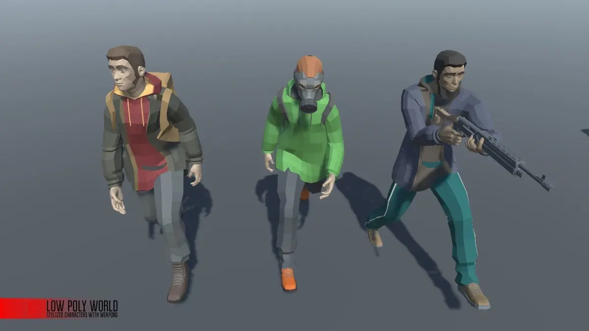 Mixaill studio presents a low-poly projectLOW POLY WORLD - STYLIZED CHARACTERS WITH WEAPONS This is a very good solutions for you lowpoly games: shooters, simulators, survival games and other.
