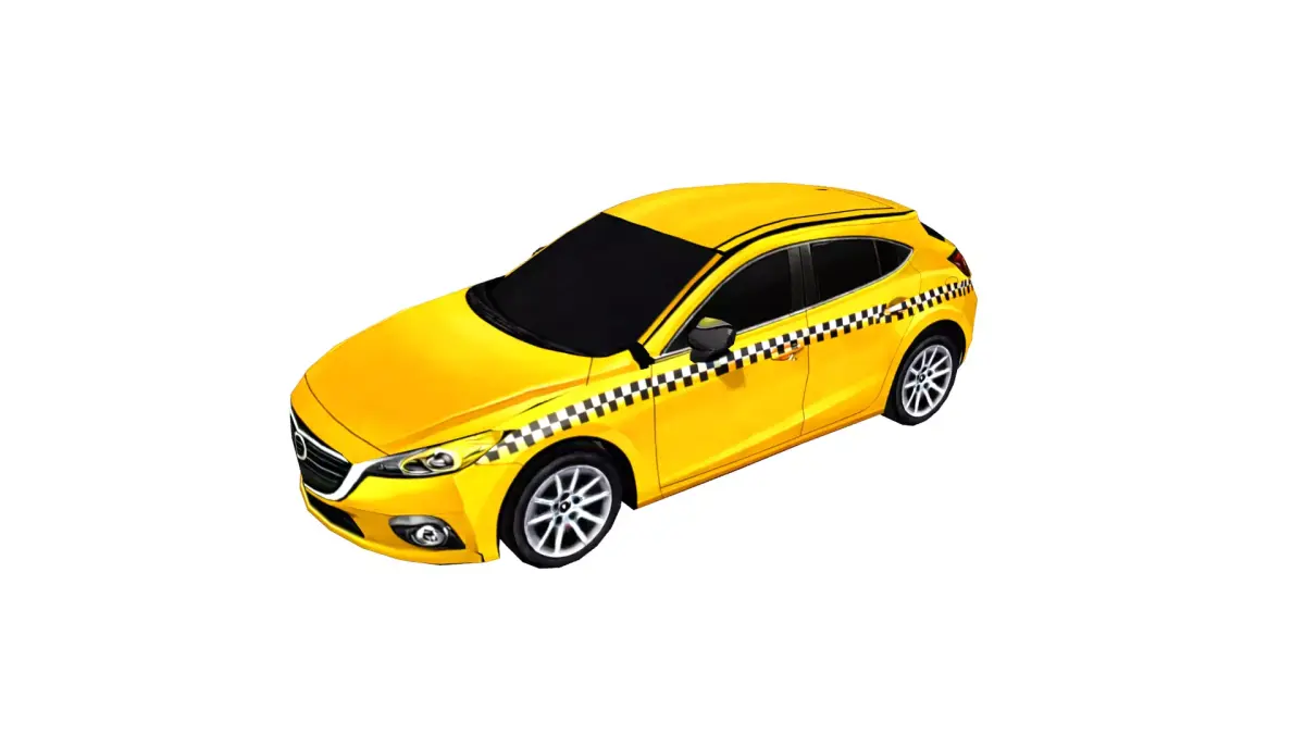 This is a game-ready, low-poly 3D model of a modern hatchback taxi, featuring the classic yellow paint and black-and-white checkerboard livery. It is perfectly optimized for city traffic simulations, mobile racing games, and background environments in VR/AR.