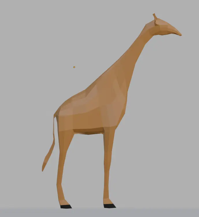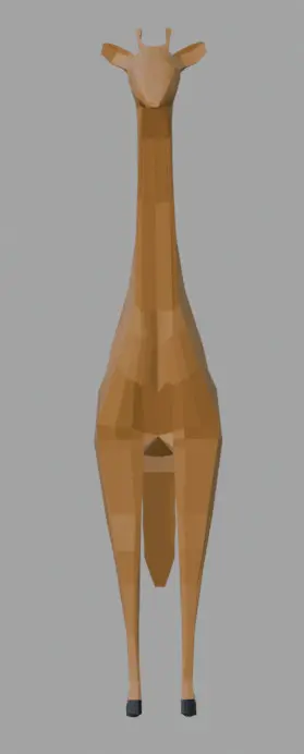 Detalhes do Modelo:A girafa tem uma estrutura bem definida, com um corpo alongado e pernas proporcionais ao seu tamanho real, trazendo um equilíbrio visual natural. Seu pescoço longo e esguio mantém a elegância do animal, enquanto a cabeça exibe formas geométricas simples que preservam seu caráter reconhecível. Pequenos detalhes, como as ossicones (as protuberâncias na cabeça) e os cascos escuros, adicionam um toque realista ao modelo sem fugir da proposta estilizada.
