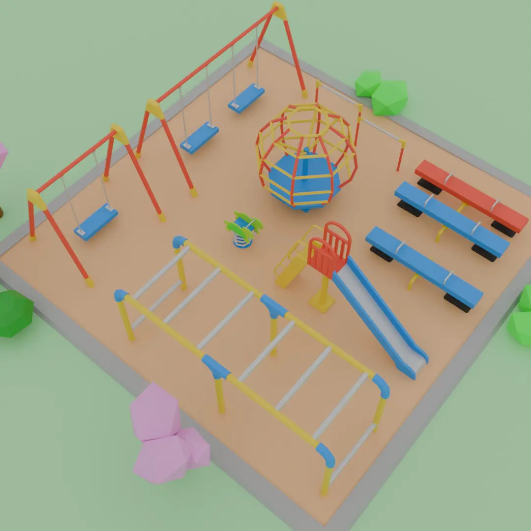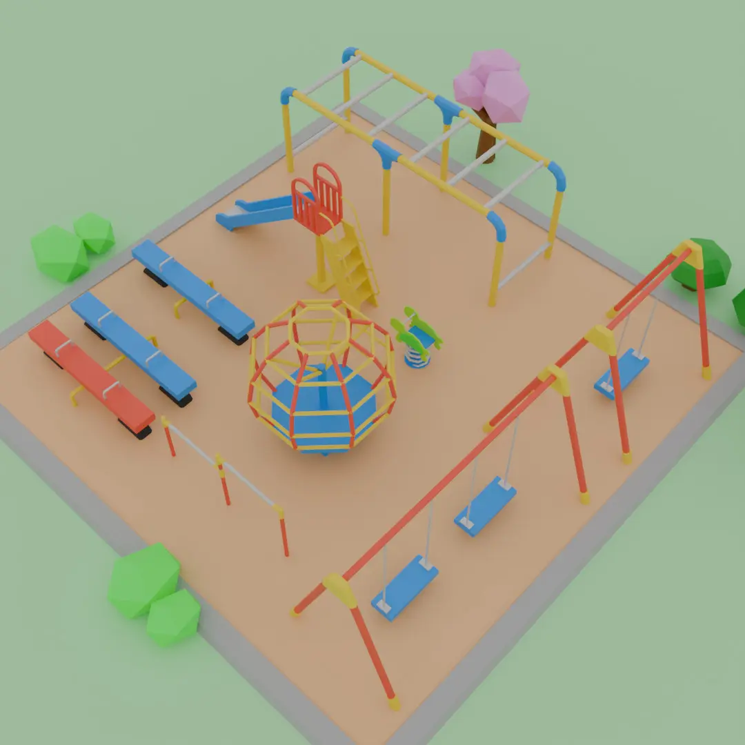 This is a set of low-polygon style Japanese park playground equipment designed in Blender. The lightweight yet attractive design captures the characteristics of Japanese parks and is ideal for game and animation production.