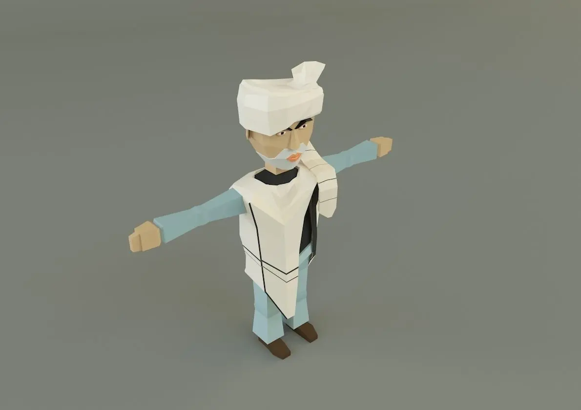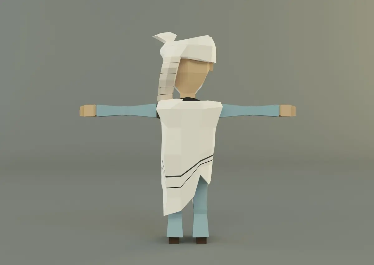 low polygon man 01. Created using blender. There is no skeletal system. There is no animation. There is a blender file. fbx file exists. Rendered using 3ds max. There is no render scene.