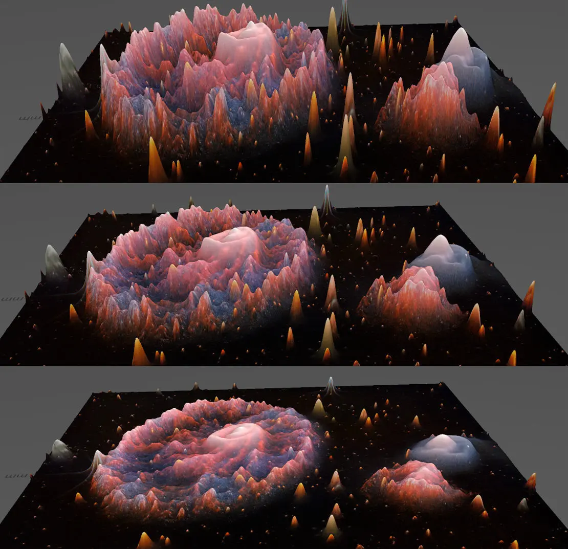 3D image obtained as a result of soft analysis of the 2D images of the new Hubble Space Telescope. The technique based on color analysis highlights the light of stars and ionized gases from the darkness of space, as gravity curves space, thus creating a spatially interpretable high-resolution 3-dimensional work.