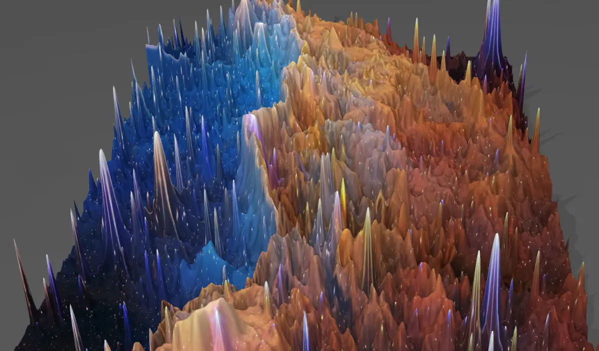 3D image obtained as a result of soft analysis of the 2D images of the new Hubble Space Telescope. The technique based on color analysis highlights the light of stars and ionized gases from the darkness of space, as gravity curves space, thus creating a spatially interpretable high-resolution 3-dimensional work.