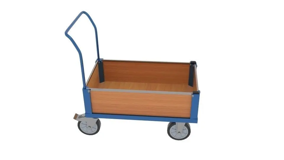 3D Low Sided Box Cart Created and Rendered in Blender