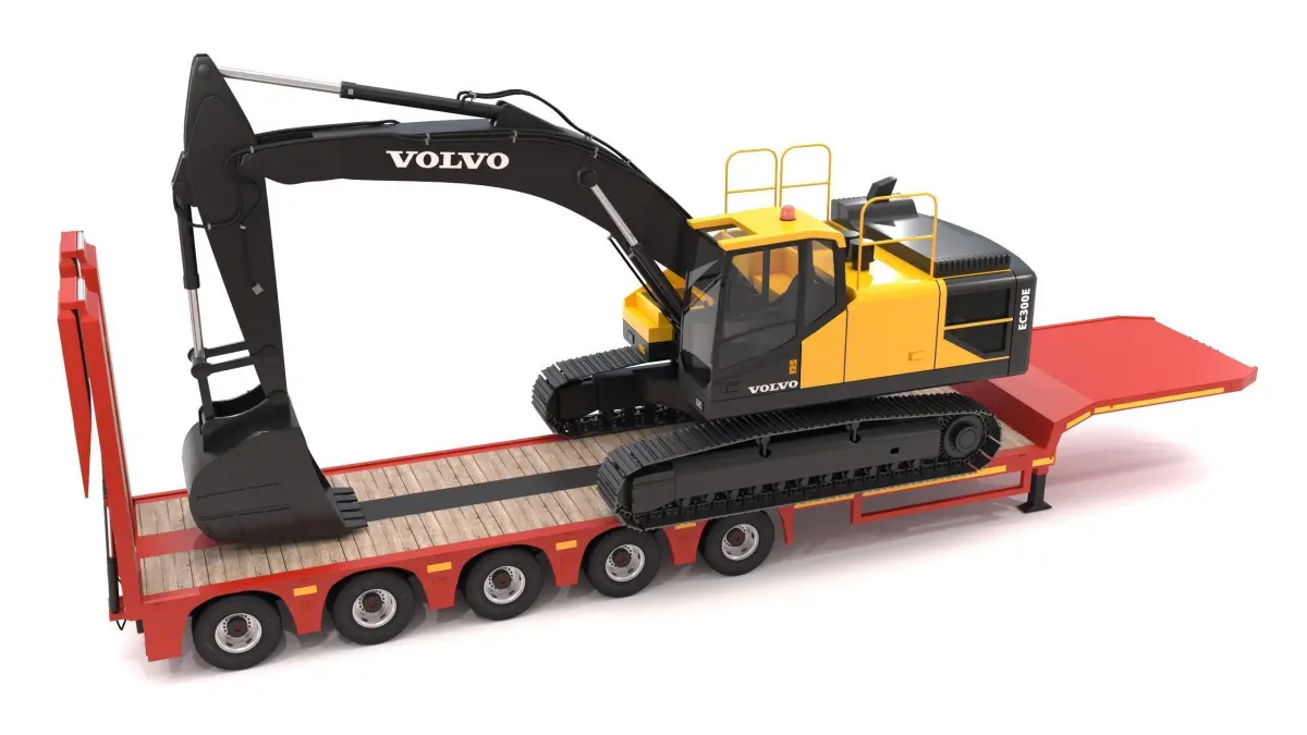 Lowboy Trailer with Excavator Volvo EC300E 3D model