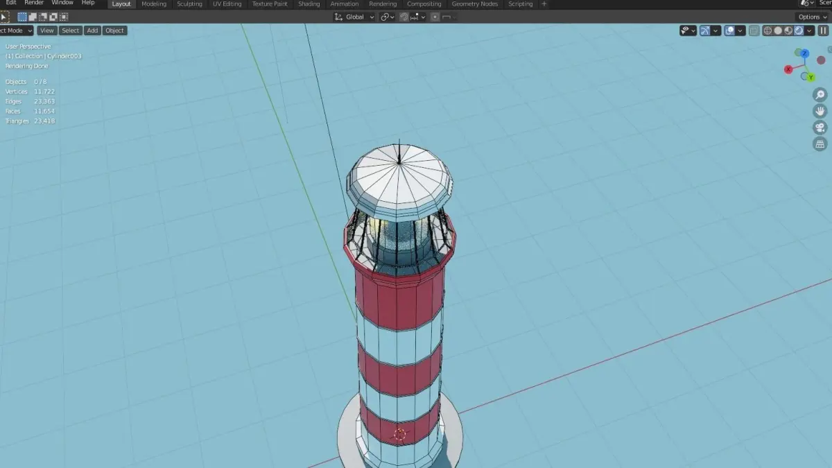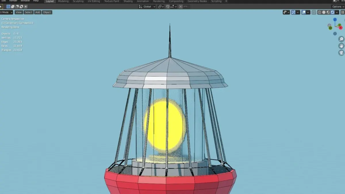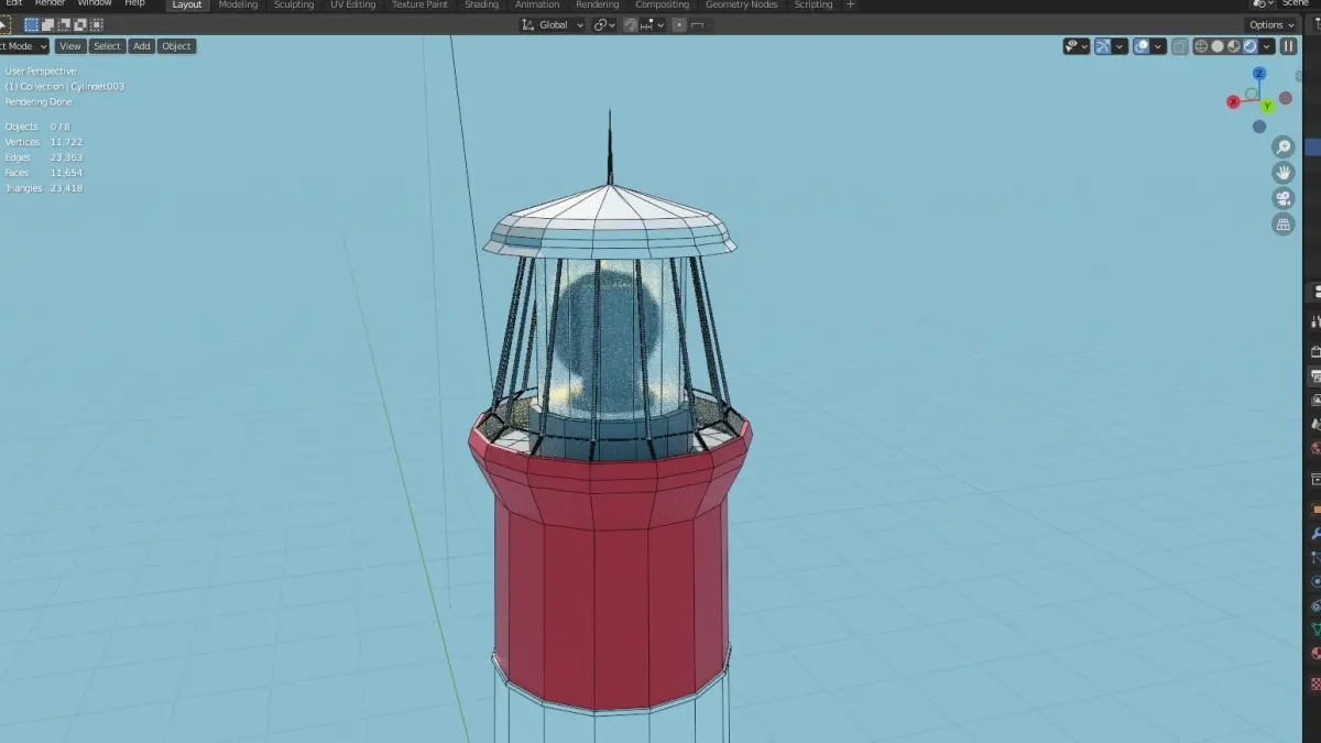 This is a lowpoly lighthouse modell made with blender. The spining top part is animated and the light it has an emission shader. The other parts have simple materials. Hope you like it.