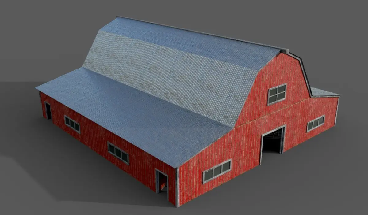 Realisitc Lowpoly Barn with interior and openable doors ready for being used in any enviroment