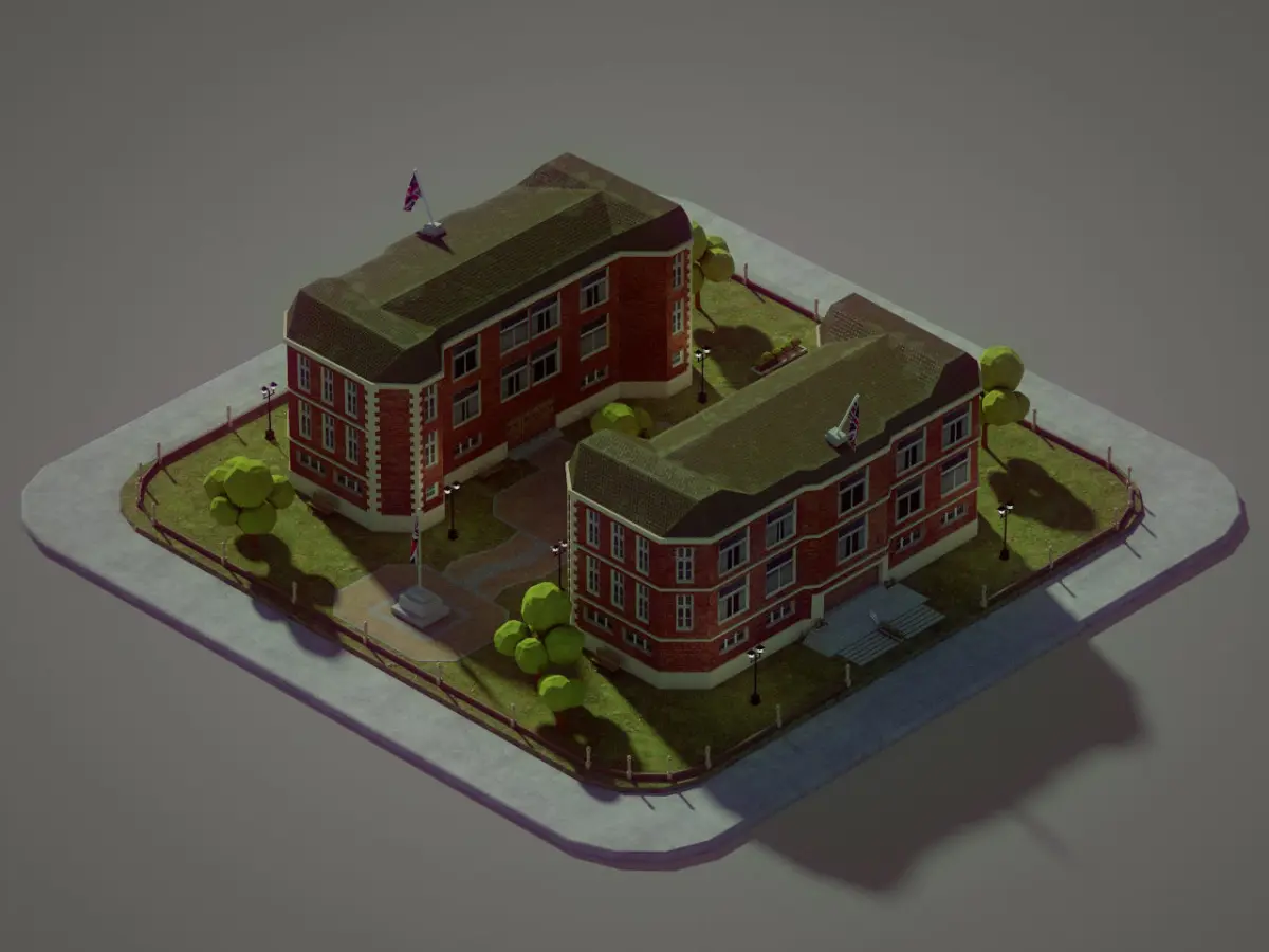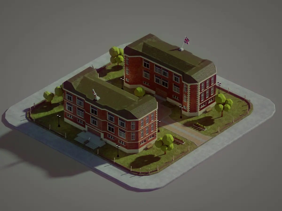 British School buildingLowpoly model. Original made on 3D Max 2019, render with RedShift 2.6
