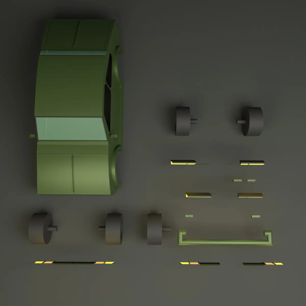 After purchasing this model, you'll get all parts of the car separately – body, wheels, lights, and more. That means you can reuse, mix, or customize them easily for different projects!