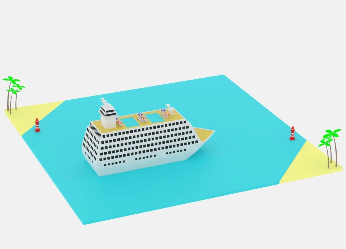 Lowpoly Cartoon Cruise Ship.