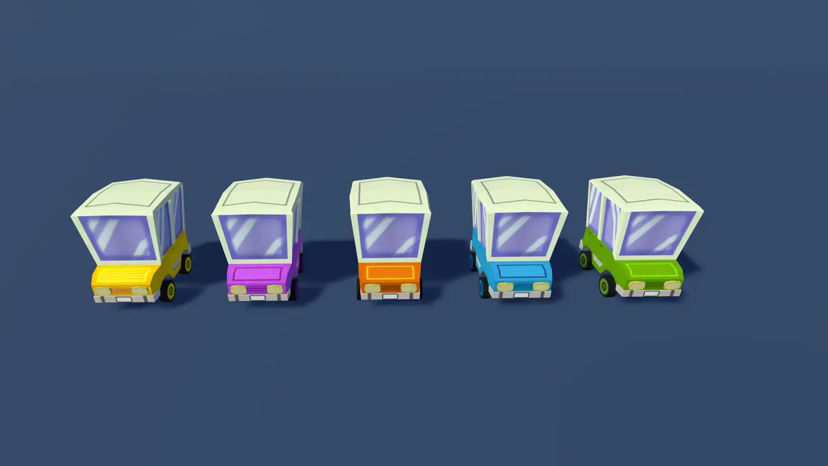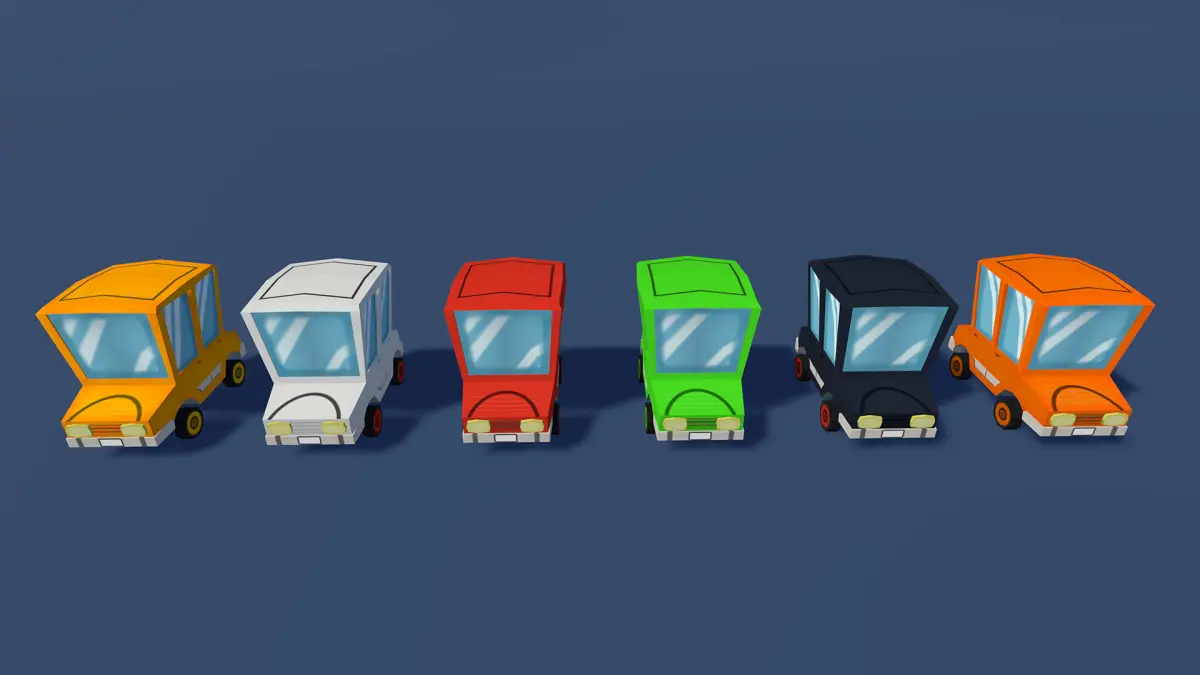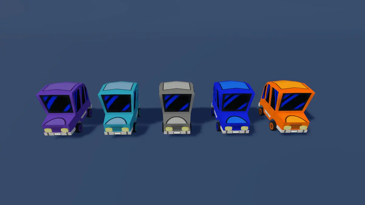 This lowpoly set of cars contains 4 models and is optimized for mobile use. The cars are rigged and have 2 animations for unity. Every car has 5 different colors. All textures adhere to the Universal Render Pipeline (URP) and include a diffuse (DIFF) map.
