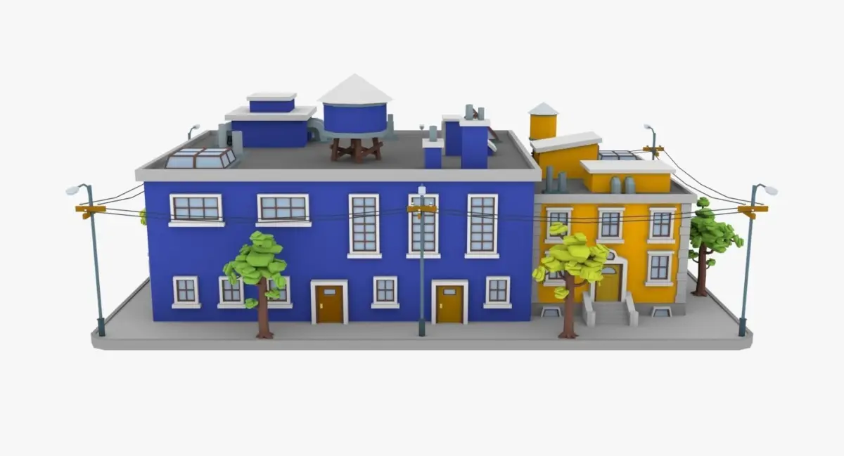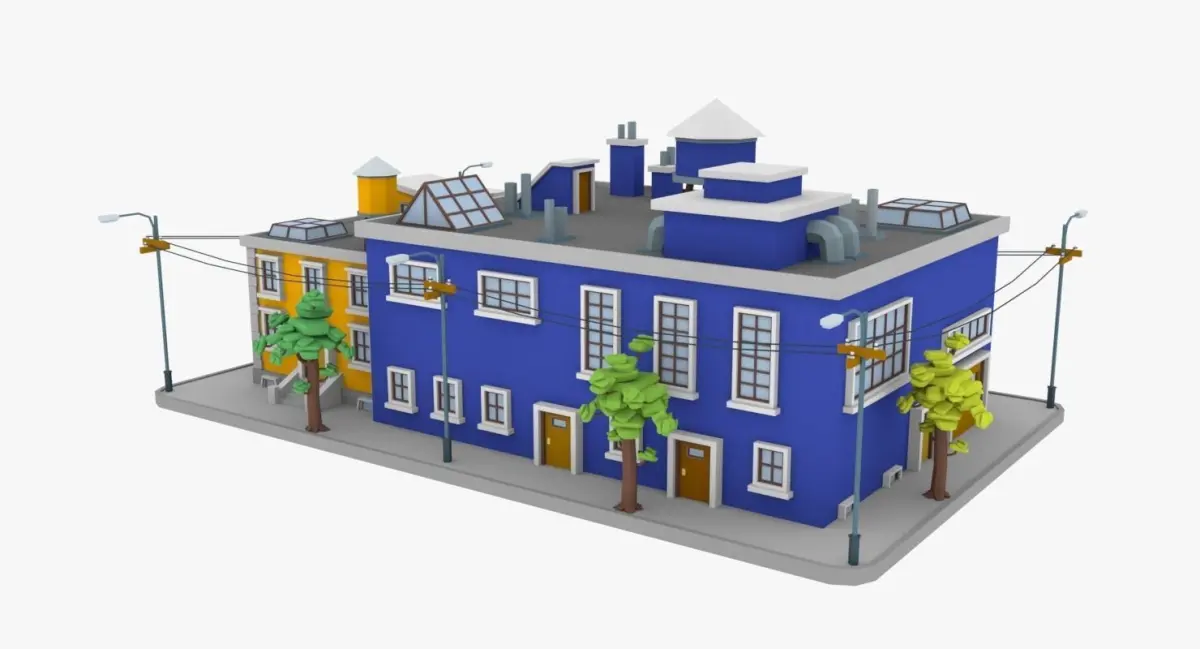 GameReady LowPoly City Block 02.128x128 Color Palette Texture(PNG).Mesh objects centered in the scene 0,0,0 for X/Y/Z Mesh scales and rotation set to 1,1,1 and 0,0,0 respectively.Created in Blender.