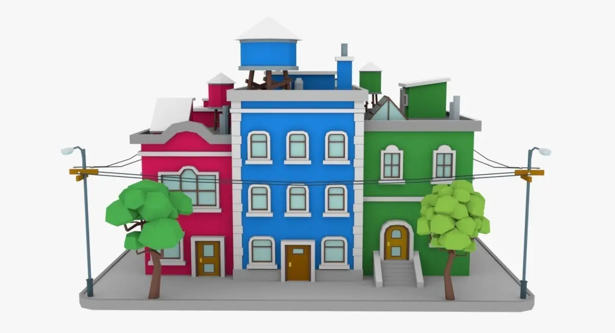 GameReady LowPoly City Block 04.128x128 Color Palette Texture(PNG).Mesh objects centered in the scene 0,0,0 for X/Y/Z Mesh scales and rotation set to 1,1,1 and 0,0,0 respectively.Created in Blender.