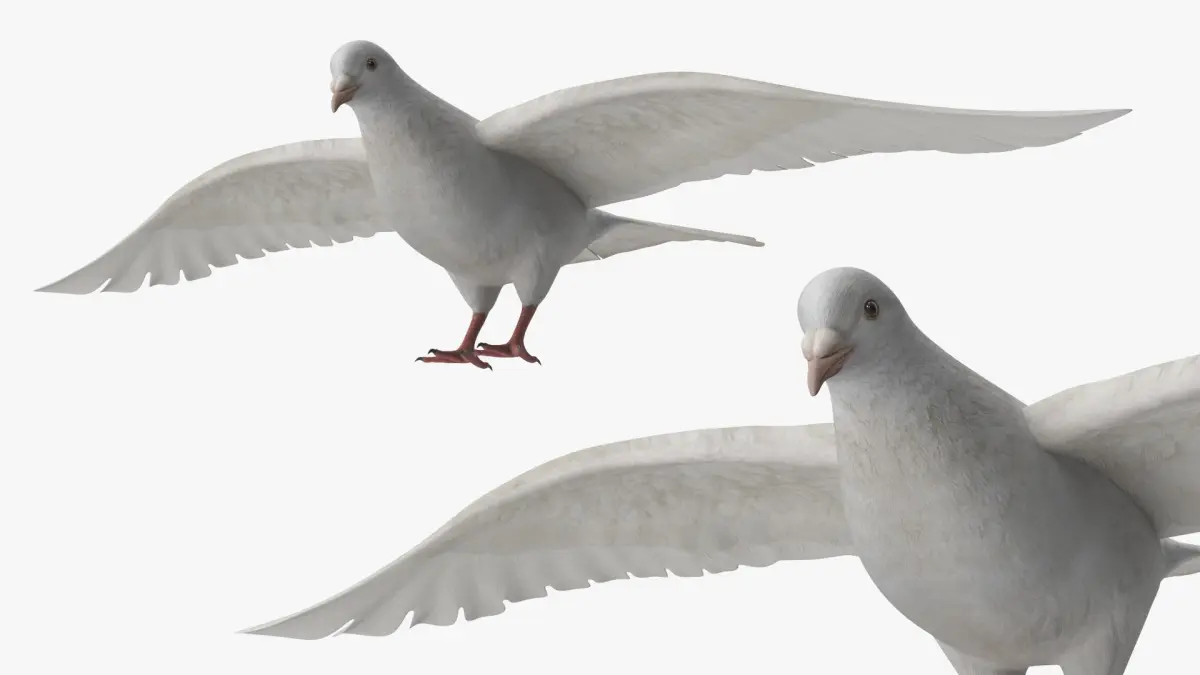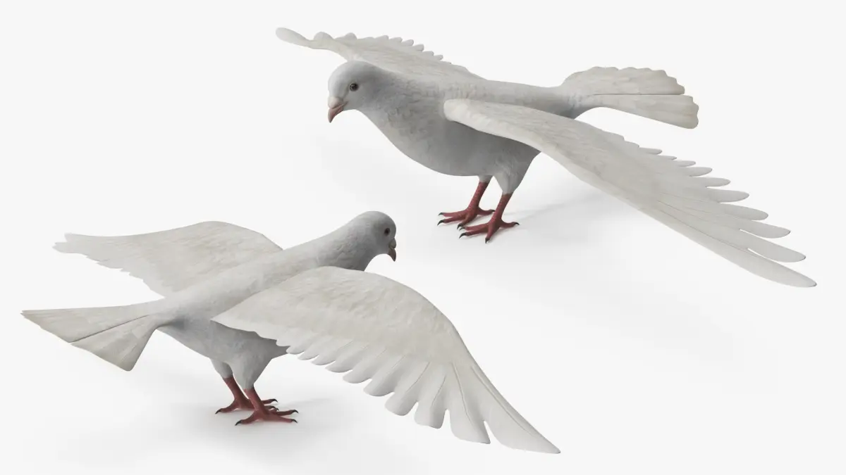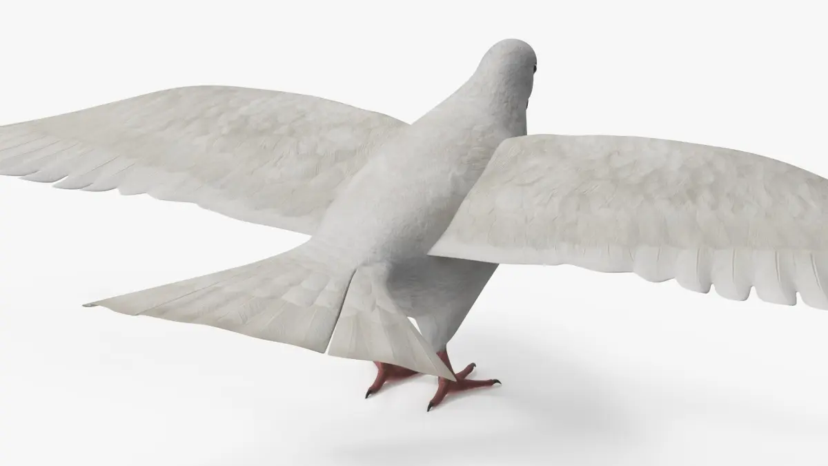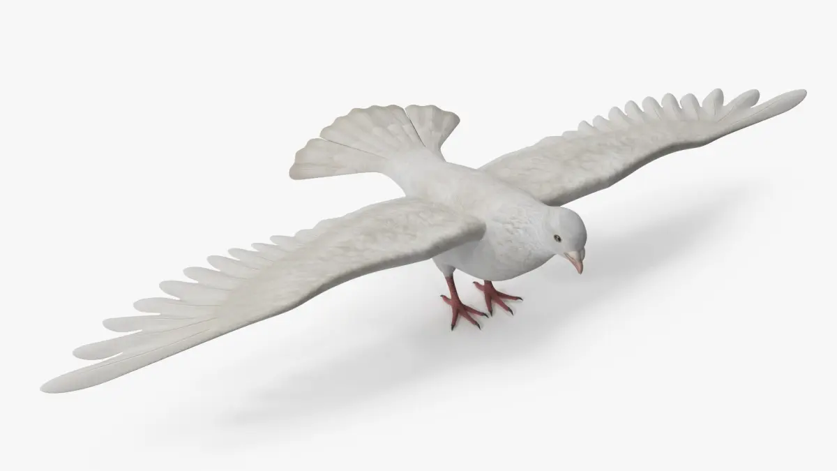 Lowpoly Dove Wings Extended White is a three-dimensional model of rock dove (Columba livia), also known as the rock pigeon or common pigeon.