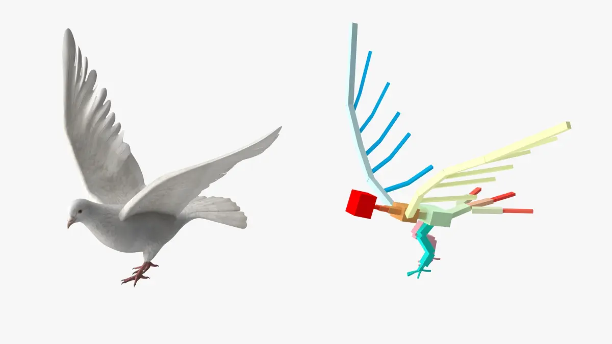 Lowpoly Dove Wings Extended White Rigged is fully rigged and is ready to be animated. You can easily position it the way you need or animate it the way your project requires using helpers in 3D Studio Max. See the turntable to get an idea of how rigging works.