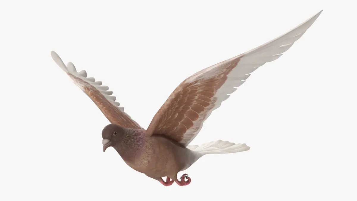Lowpoly Ferals Dove Flying Position Brown is a 3d model of a flying dove, capturing the grace and elegance of this common urban bird in motion.