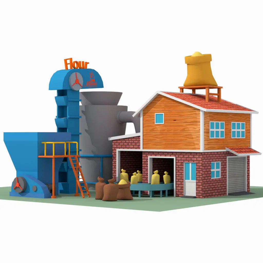 Low Poly Flour Factory model Rendered in isometric view. Originaly created in Maya 2020 and Arnold. But you can use other renderers such as vray, red shift, ... because this model has standard materials only and one textures were used. Ready for Virtual Reality (VR), Augmented Reality (AR), games and other real-time apps such as unreal engine and Unity. Product is ready to be placed in your scene and rendered. This model has only one material (standard material) and properly named so you can easy use it. Model is built to real world scale. File Formats: Maya 2020 Fbx Obj Poly Count: 12598 faces ( only quad and triangles) 8347 verts 20717 edges