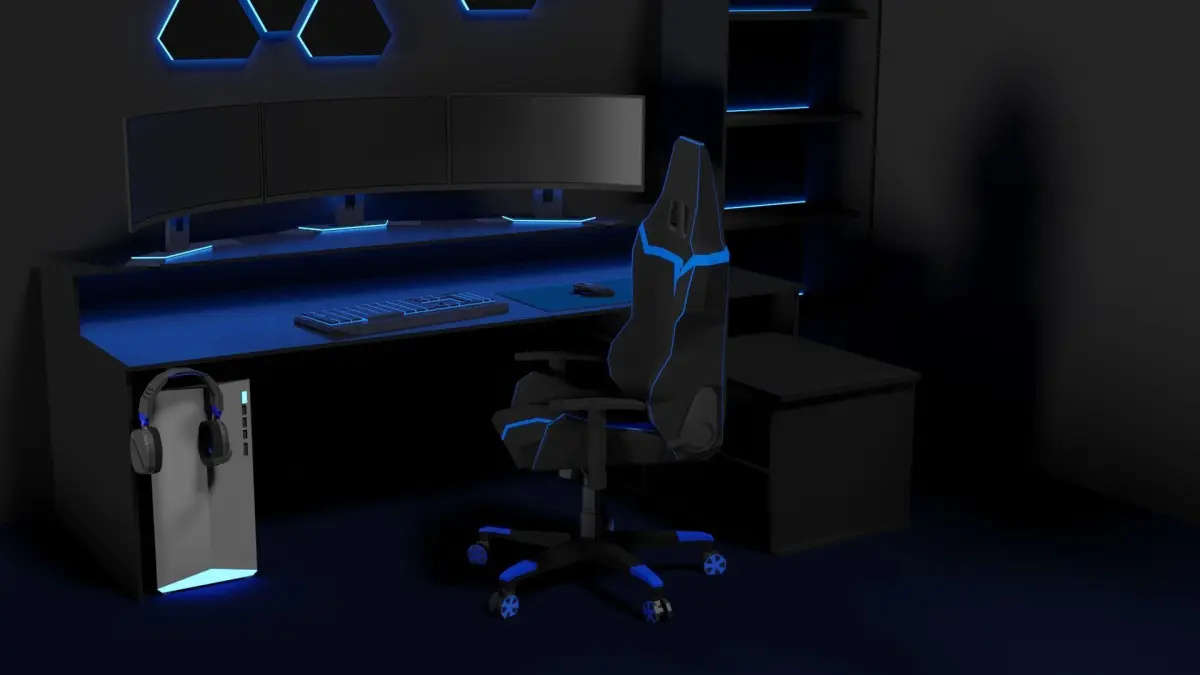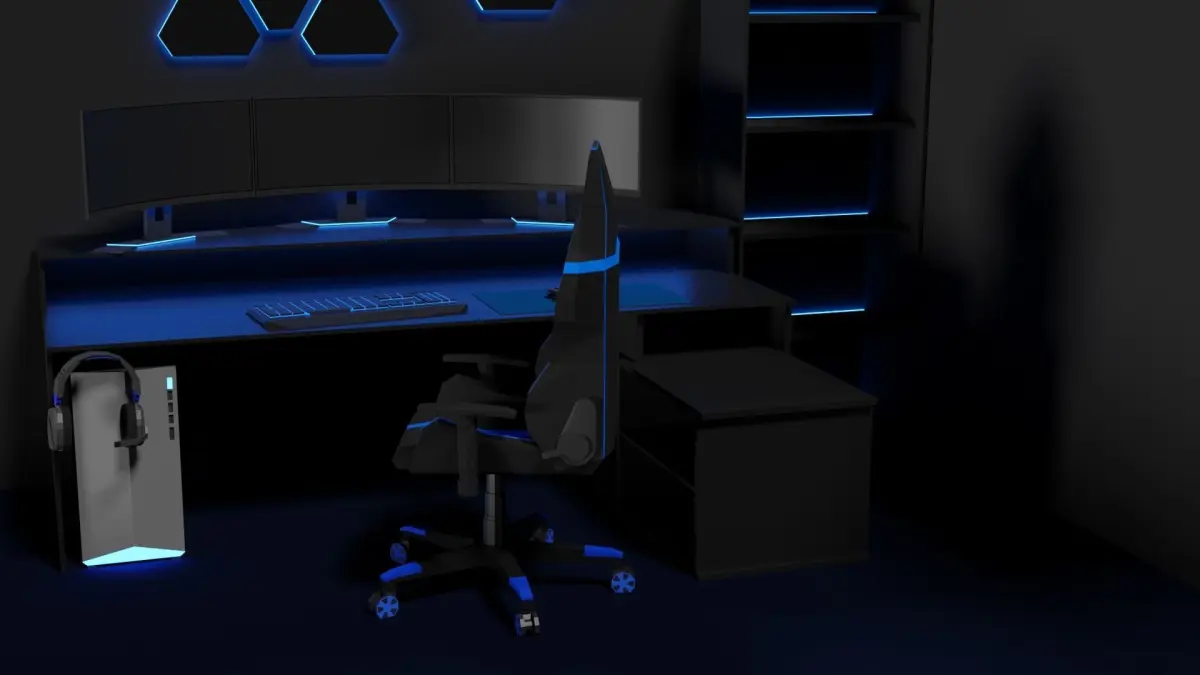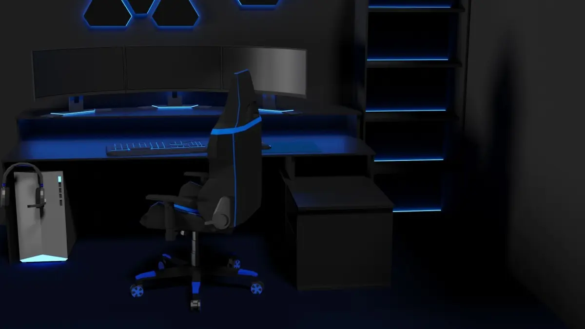 A simple Gamingsetup in a cool Lowpoly Style. You could use it for your next game or a littel Video. The lowpoly comic like style is timeless and cool you should try to create a video game with this kind of graphic style.