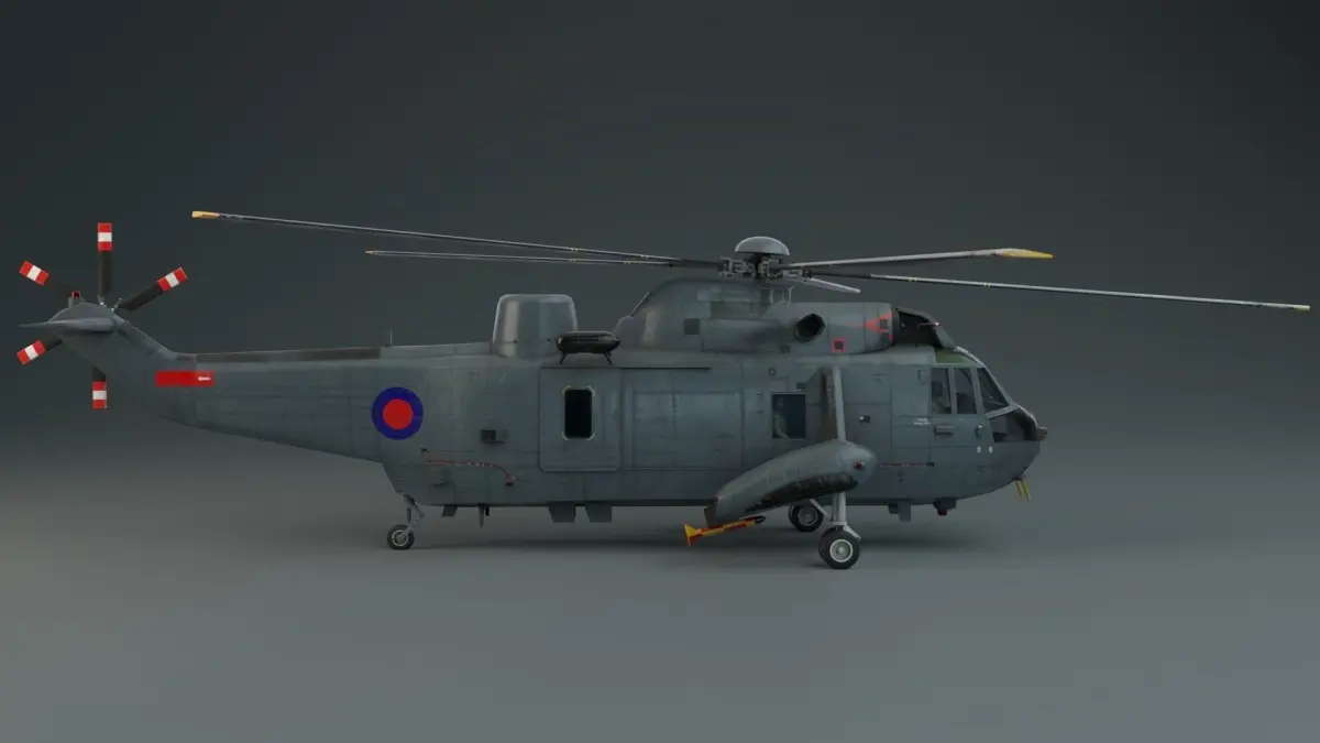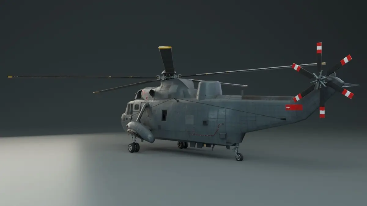 Lowpoly, game ready 3D model of a Westland Sea King HAS5 Helicopter. Model includes unwrapped UVs, textures, collision mesh and level of detail meshes (LOD0, LOD1, LOD2, LOD3). Low detail pilot/crew models included inside the aircraft.