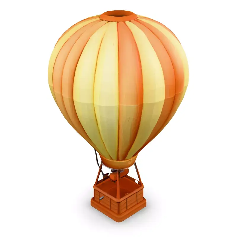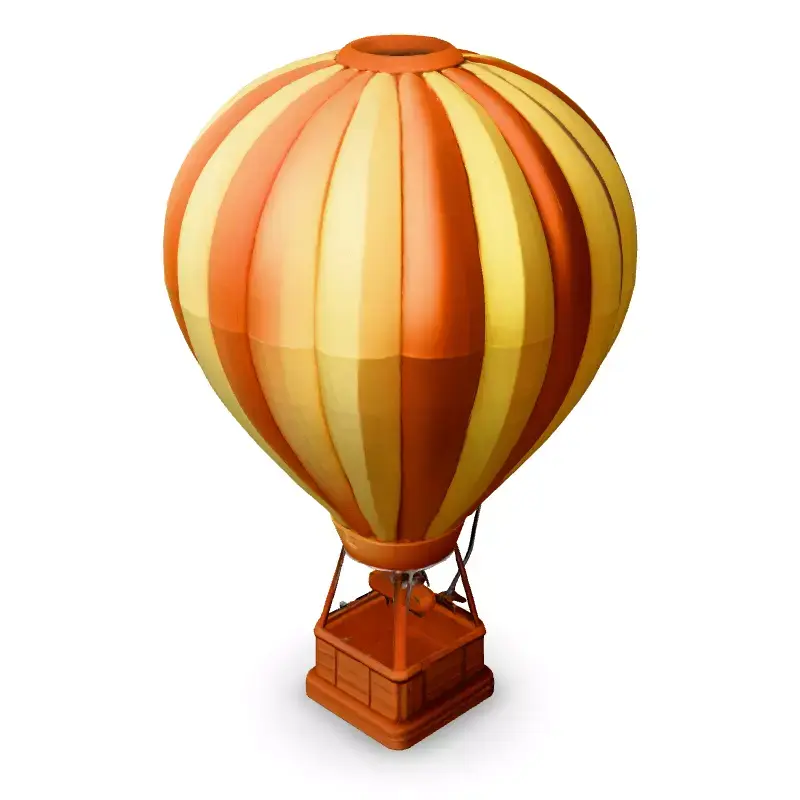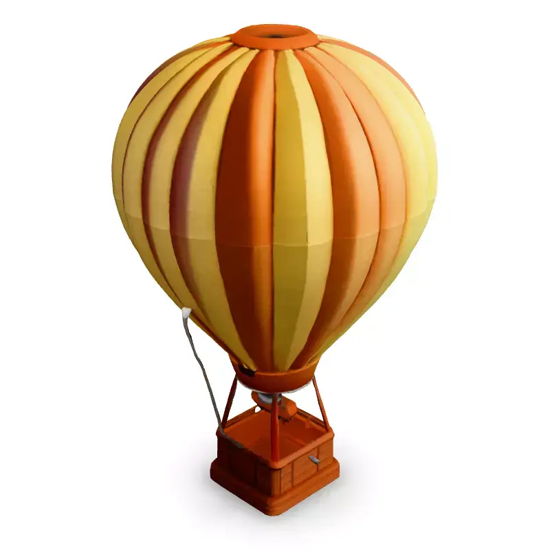 This low-poly 3D model of a hot air balloon is perfect for adding a touch of whimsy to your projects. Ideal for game development, AR/VR experiences, animations, or even as a stylized element in architectural visualizations. The model features a classic striped design in yellow and orange, with a detailed wooden basket. Available in multiple formats including GLB, OBJ, FBX, and STL, it is optimized for real-time applications with a low polygon count while retaining visual appeal. The clean topology and UV unwrapping allows for easy texturing and customization. While not specifically designed for 3D printing, minor adjustments could make it suitable. This asset is game-ready and perfect for adding a charming, low-poly hot air balloon to your scenes.
