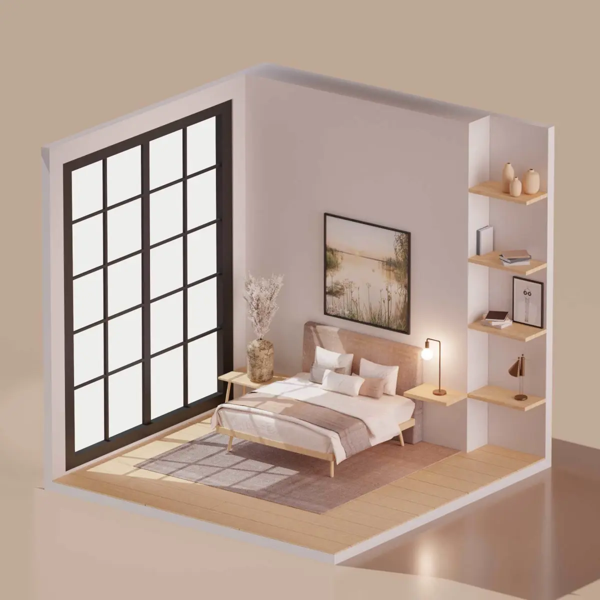 Transform your 3D rendering projects into realistic and captivating interior scenes with this comprehensive Lowpoly Interior Room 3D Model Pack. This meticulously crafted collection includes 5 essential rooms: a modern kitchen, a cozy