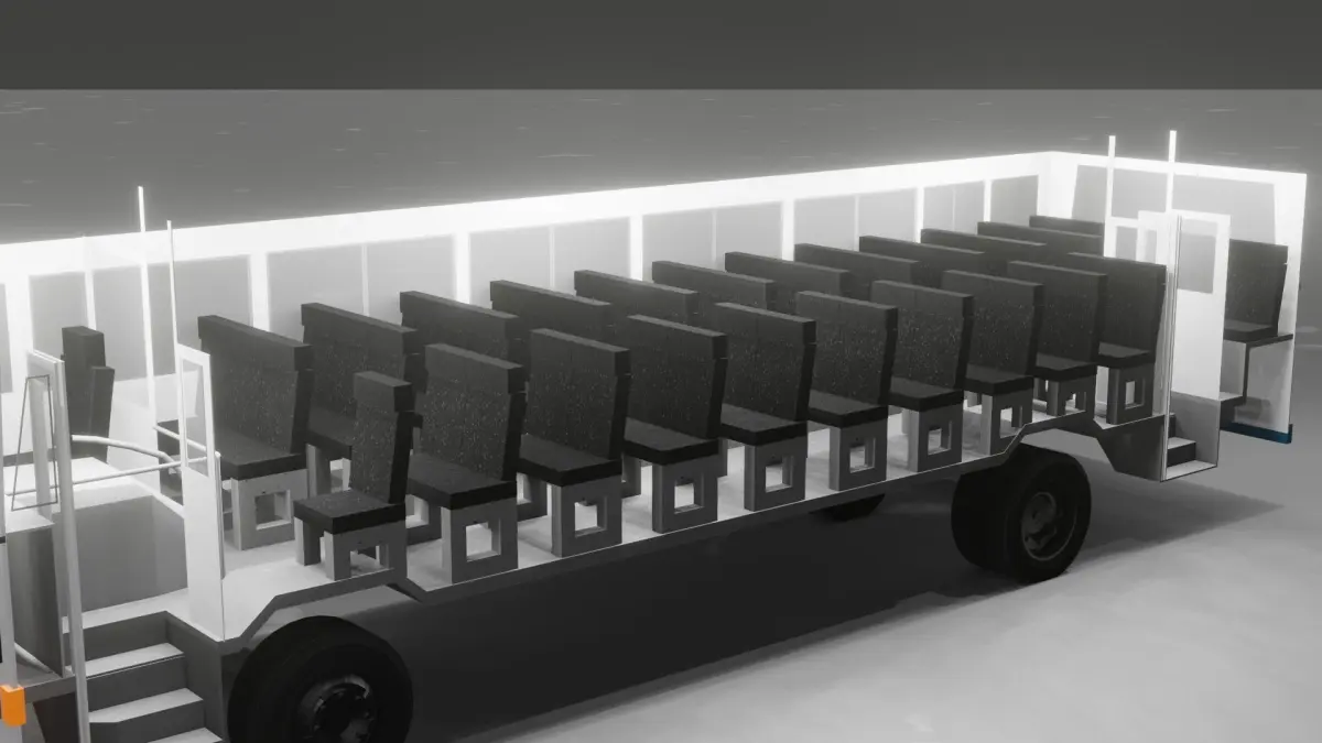 58 Passenger Seats and Movable Steering Wheel, Two Doors , Driver Door and Dickey.