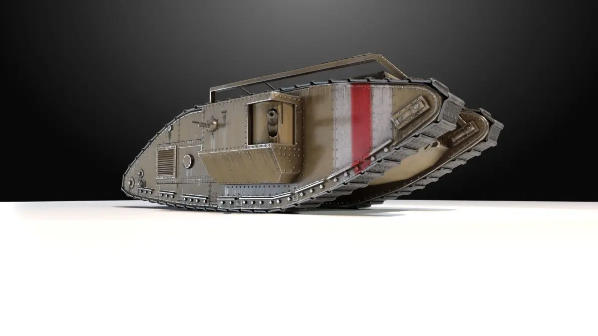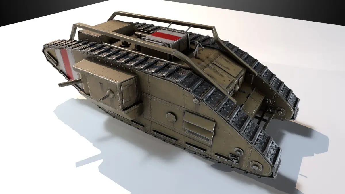 Lowpoli model of the mark 5 tank, male version. The kit contains: lowpoly hull model and lowpoly track model, texture maps for these models, such as: color, metallic, roughness, normals and AO map.