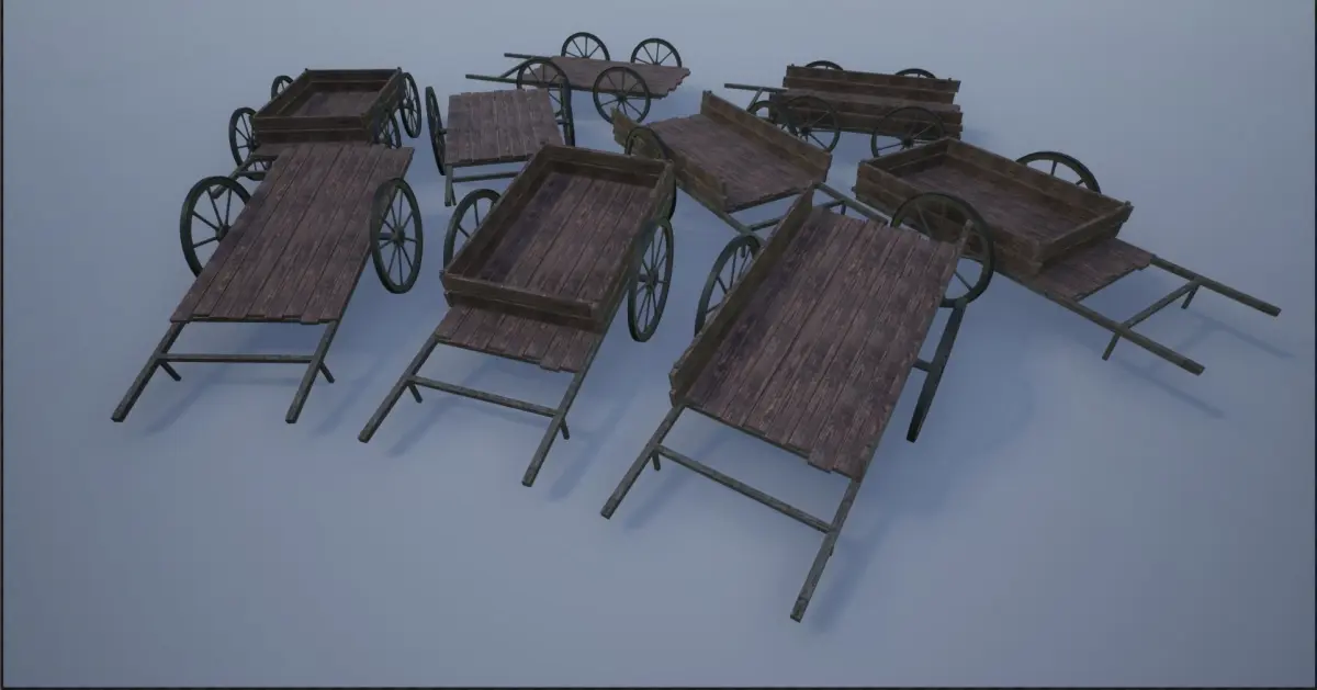 - 2 wheel medieval cart 1 slope : 990 polys, 2076 tris, 1112 verts