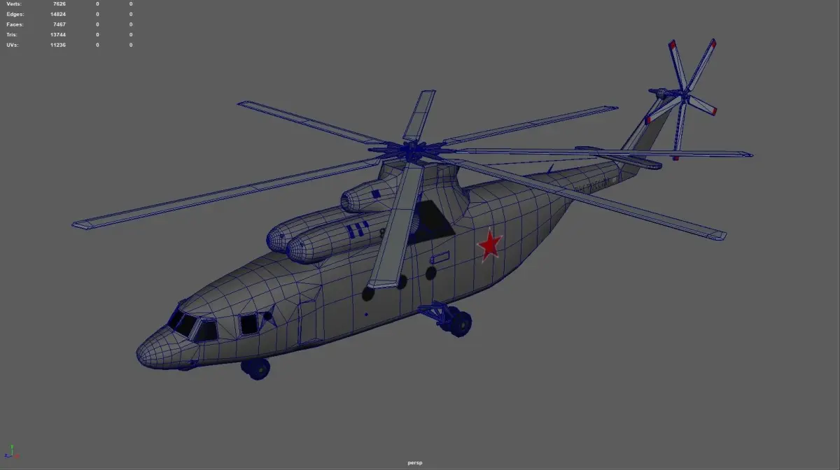 Tris: 13744 Vertices: 7626 The model does not have any Ngons, only Quads and few Tris.