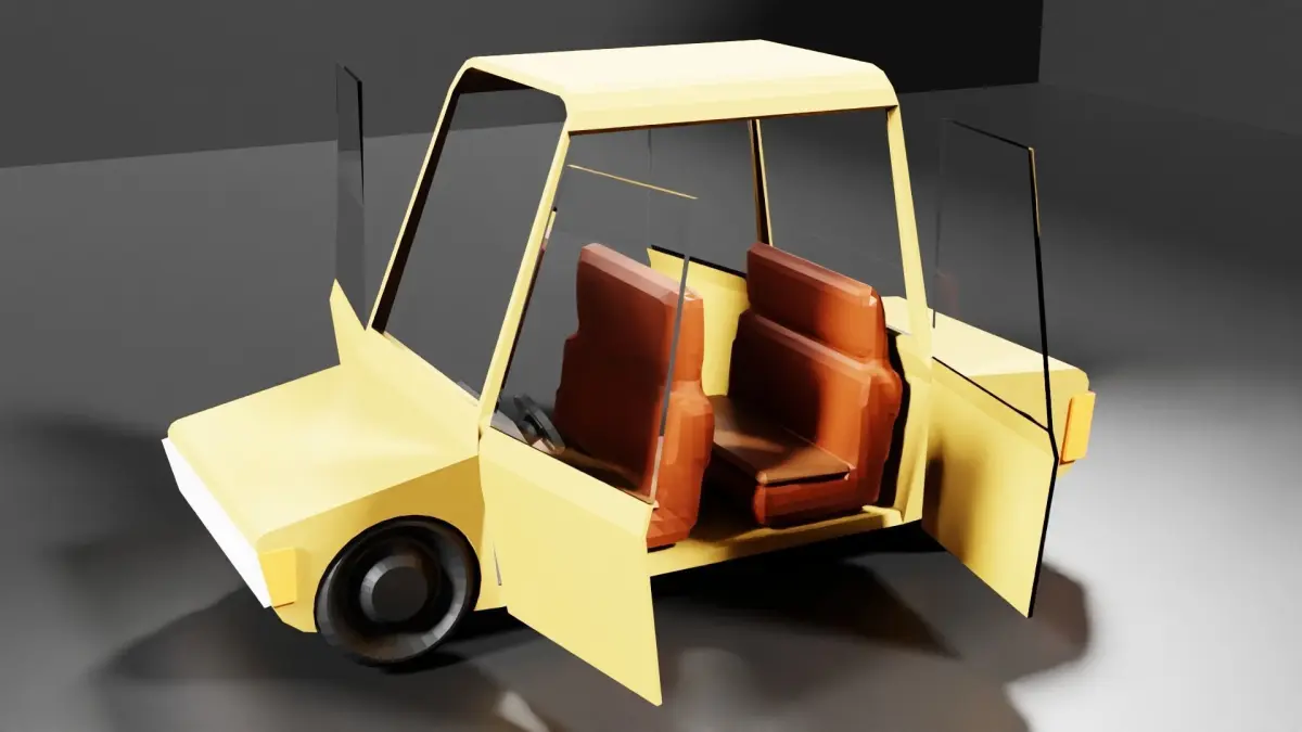 lowpoly mini yellow car for using in game support light & meterial in blendersupport 3D print in download have x1 Full file blender 3.4.1 cycle renderx1 STL full part carx23 STL full part car