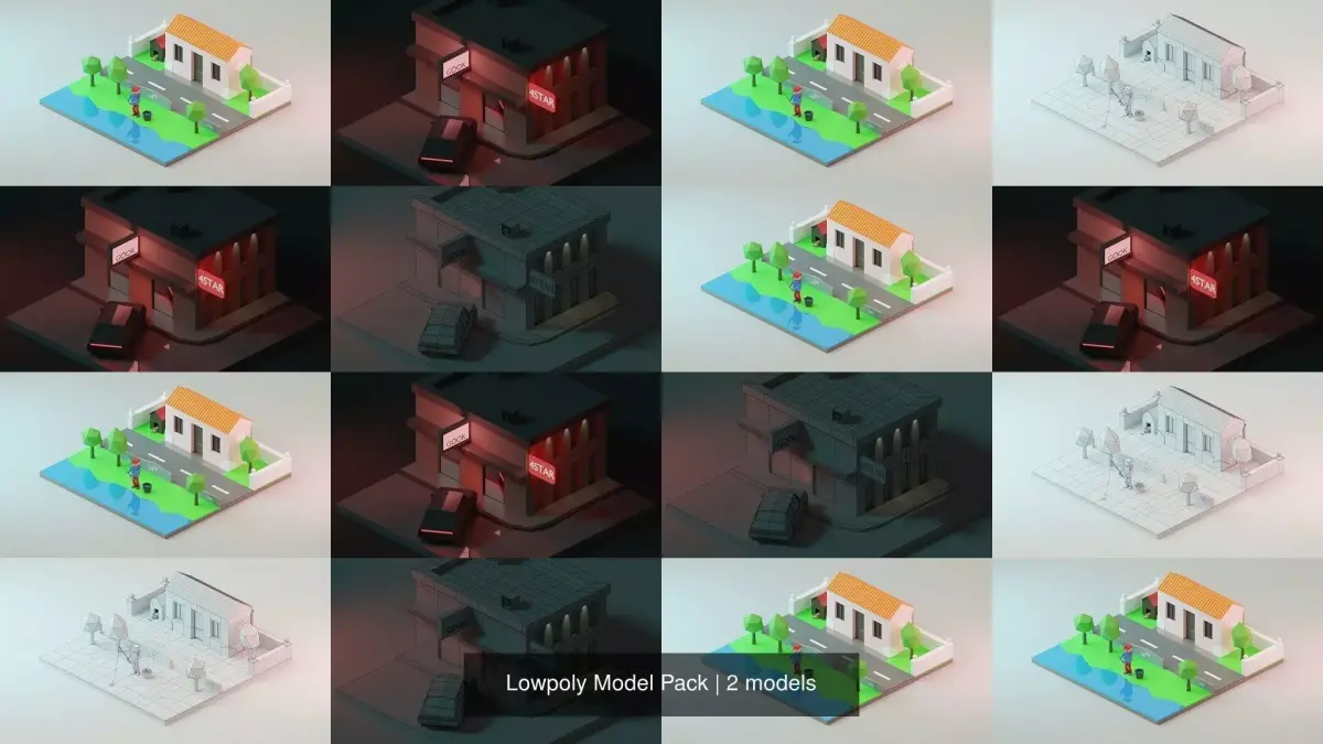 HomeCatalogLowpoly Model Pack house with garbage can