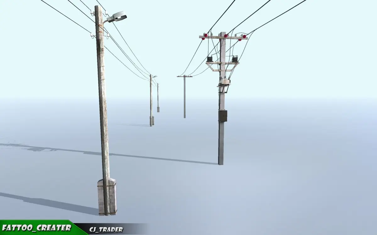 - 10+ Meshes: Lowpoly Modular Power line Low-poly 3D models, Wire, Voltage 3D Model, Tower,Pole, Light Pole