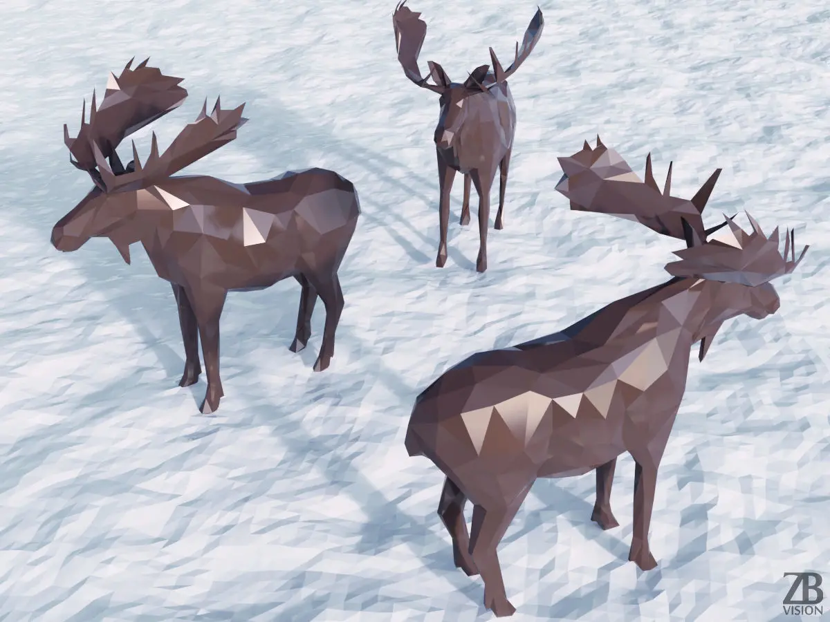 This is a lowpoly 3d model of a generic moose. The lowpoly animal was modeled and prepared for low-poly style renderings, background animals, and general CG visualization. The 3d moose is ready to be inserted into your scene out of the box.