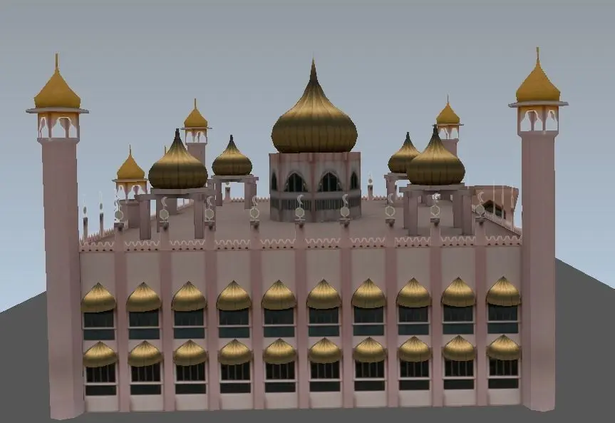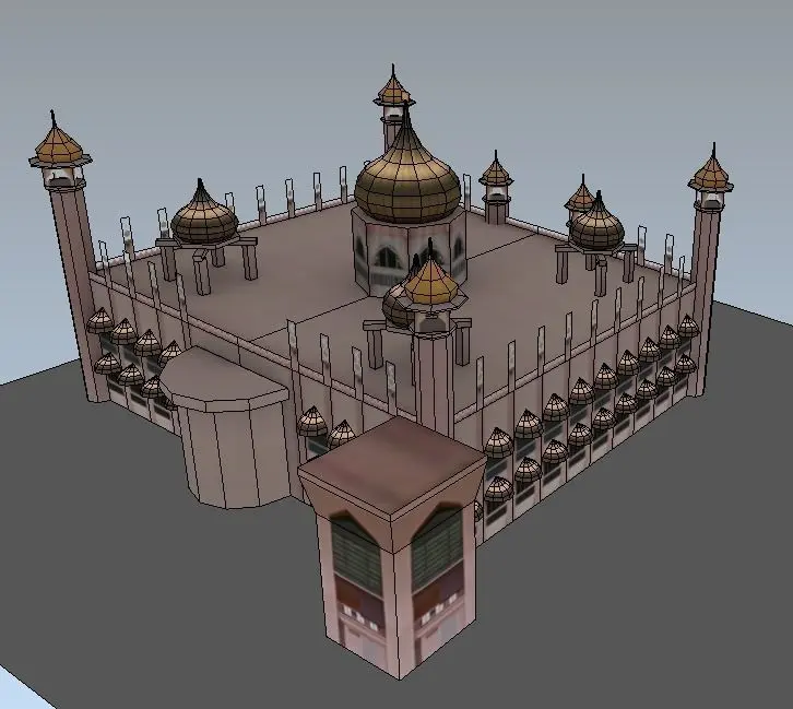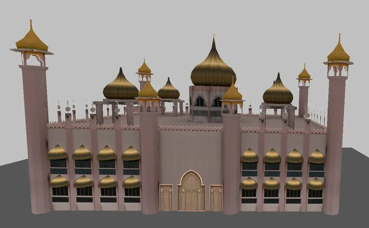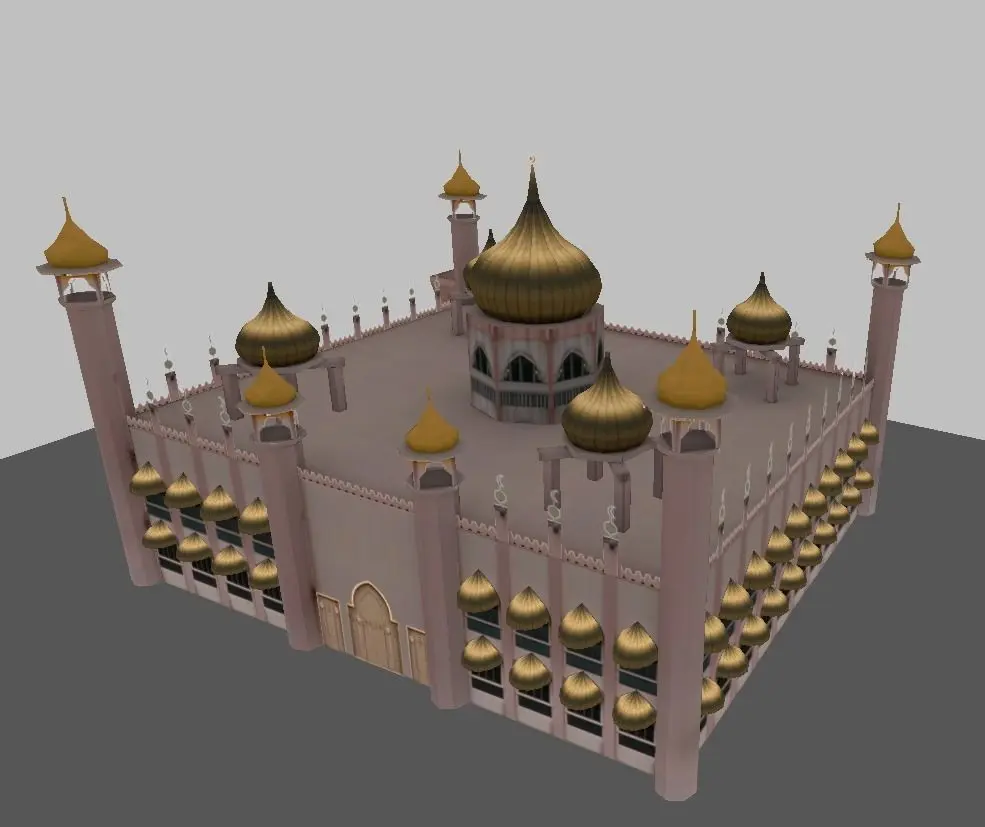 HomeCatalogLowpoly mosque model islamic with golden domes Low-poly 3D model
