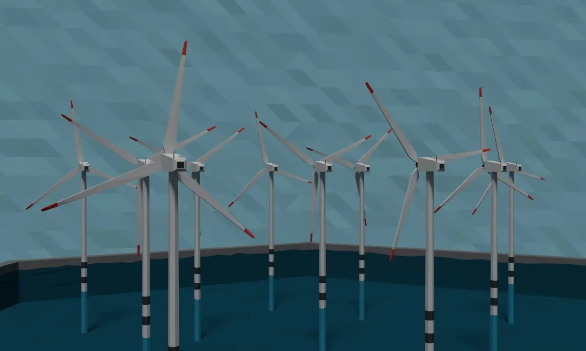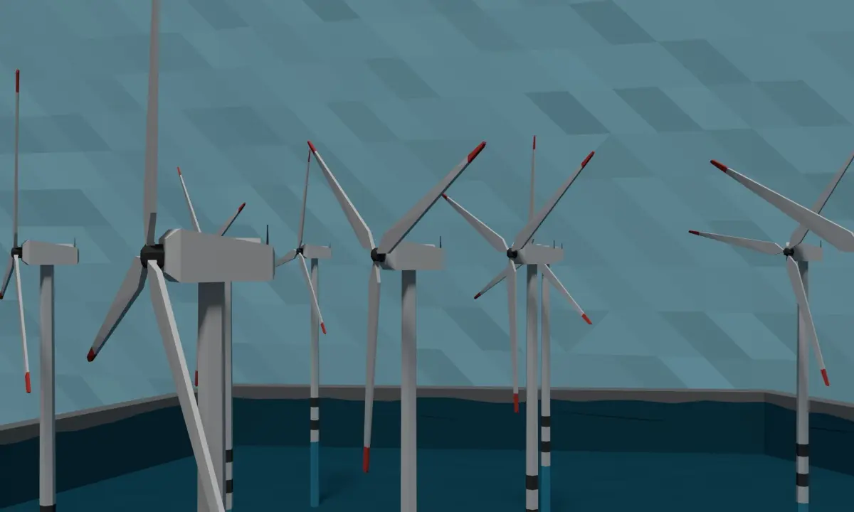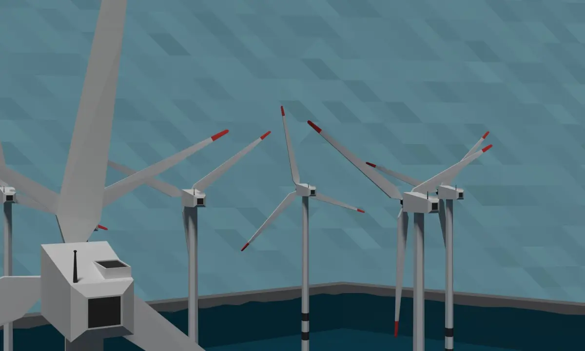 This is a high-quality low poly offshore wind powerplant. It is perfect for mobile games, computer games, and VR applications.