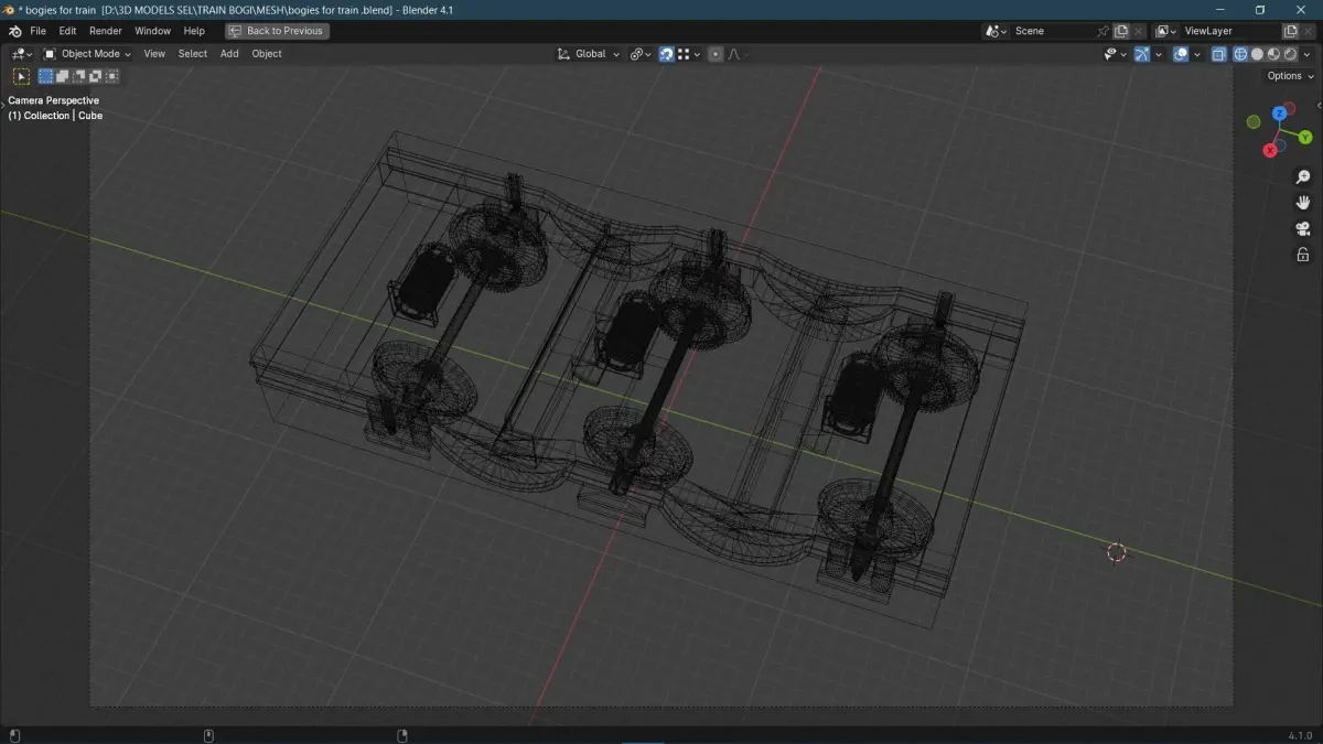 Game-ready model:Mesh data of bogie with no wheel subdivision: Vertices: 31,345 Polys: 28,869 Mesh data with first subdivision of wheels: Vertices: 39,025