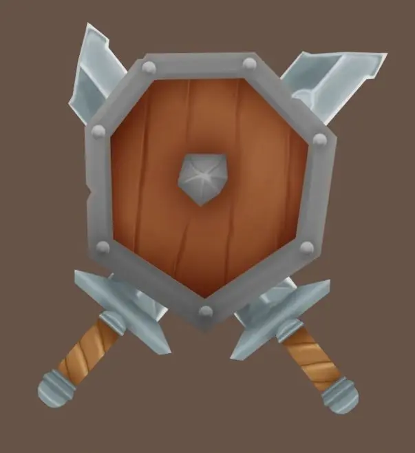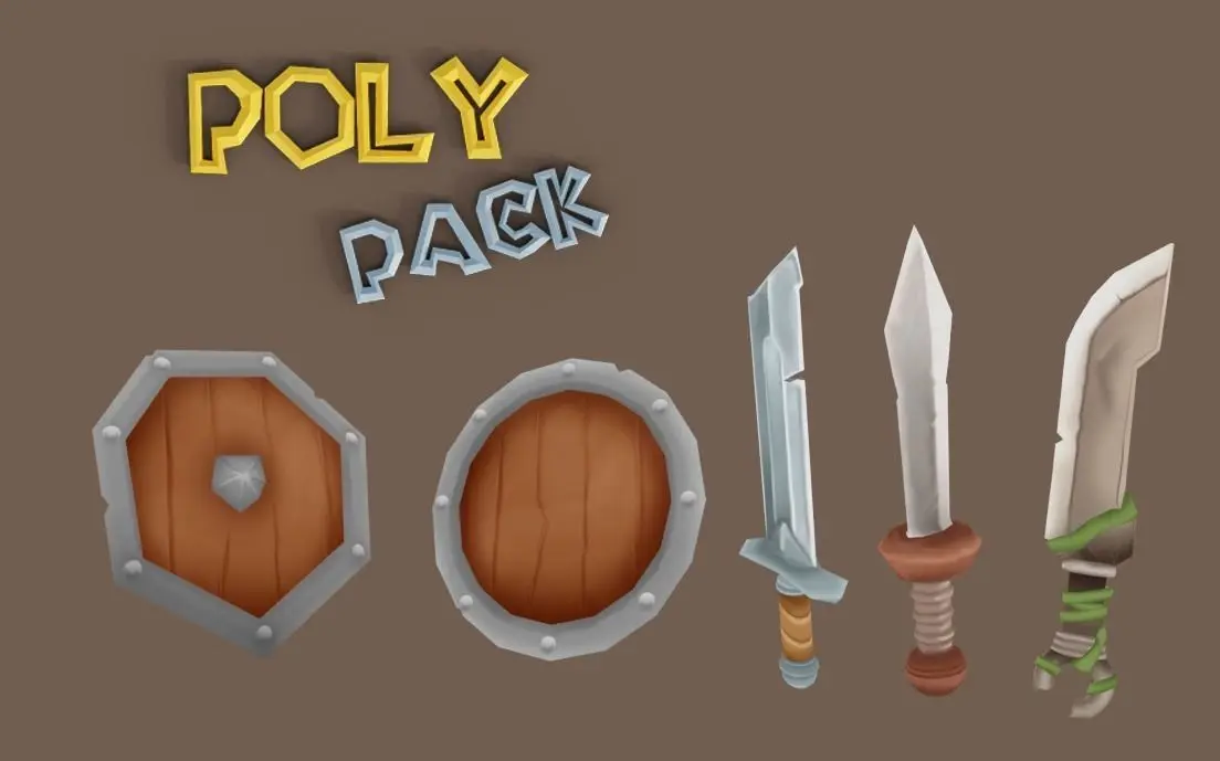 3 Swords, 2 Shields with Hand-Painted Textures.