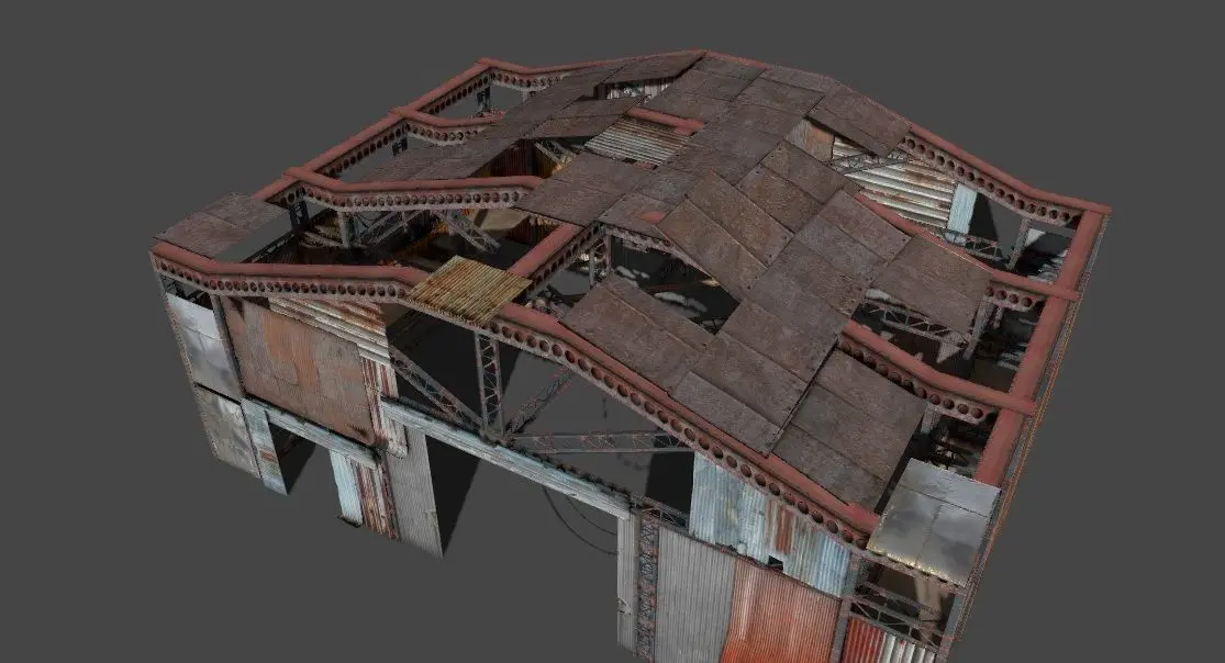 Gameready lowpoly rusty hangar for your game/scene.