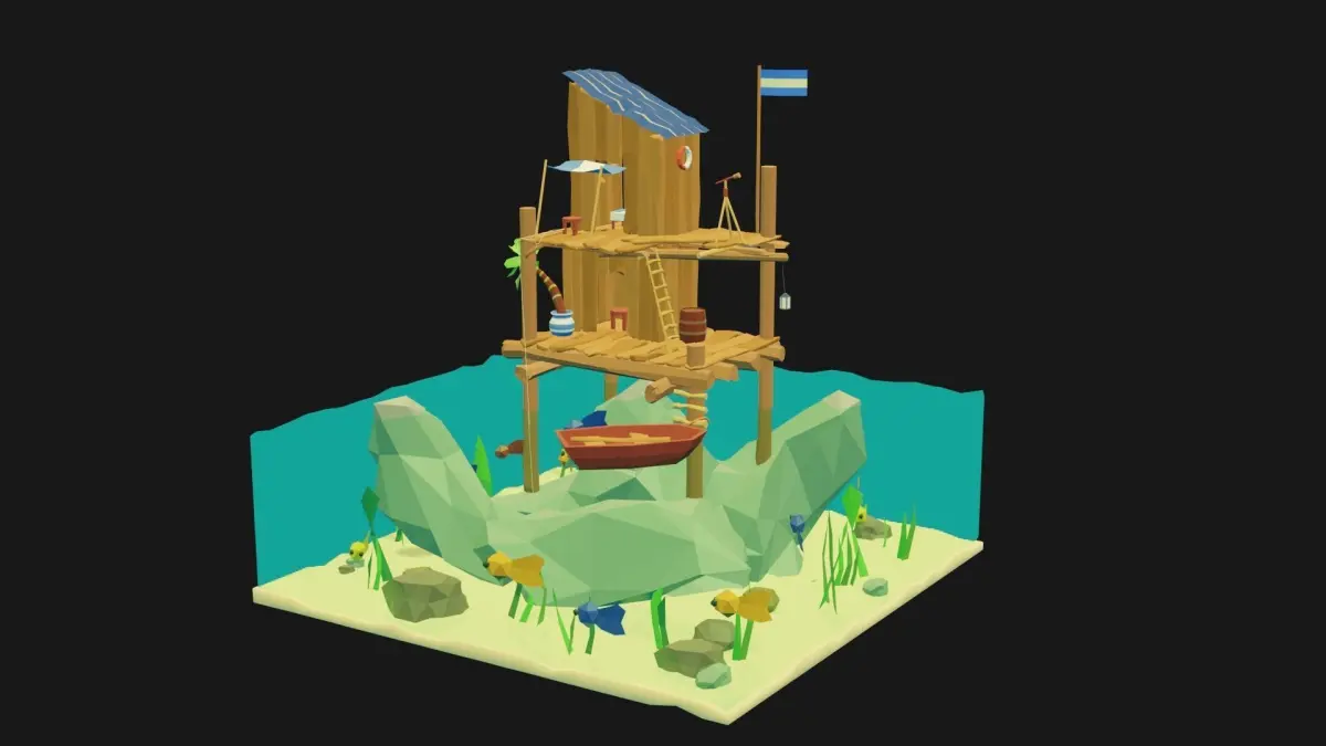 LowPoly SeaShack - Rigged and Animated Low-poly 3D model