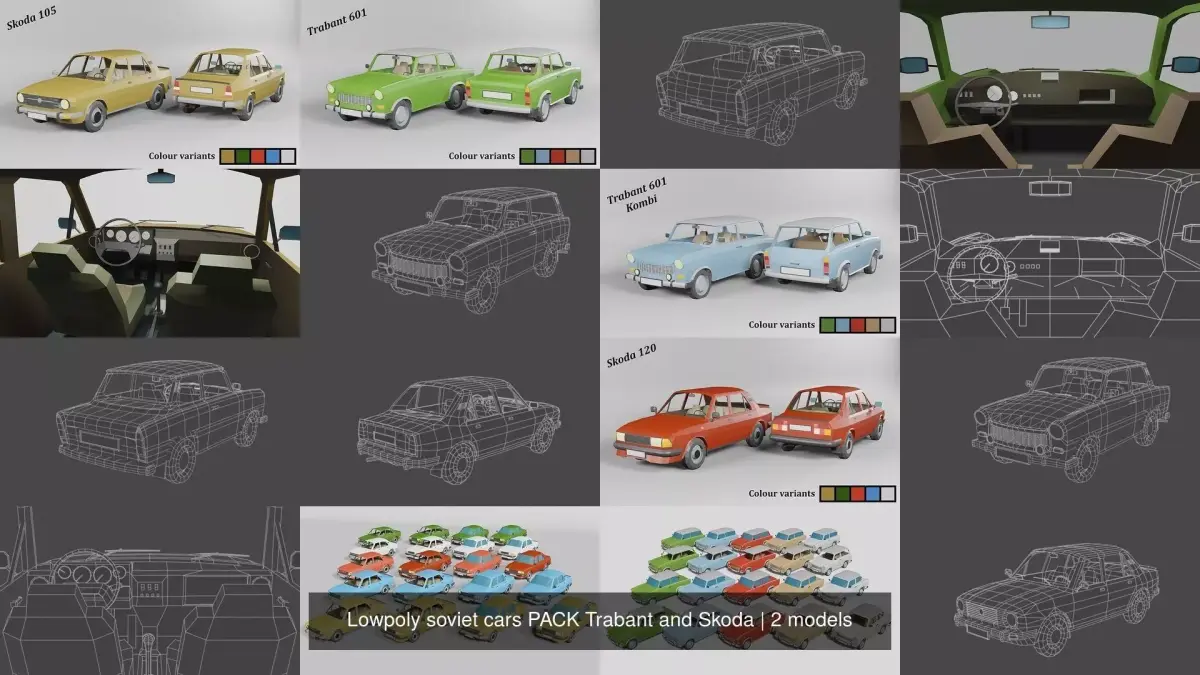 All vehicles included with or without interior and in 5 colors3 file formats: fbx, obj, stl Original native files included