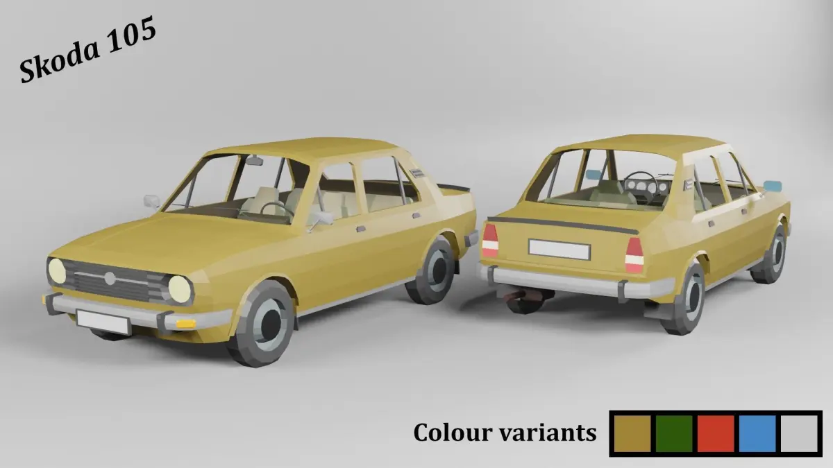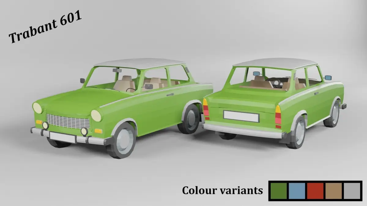 Two lovely lowpoly cars from soviet era in one pack. Each available in two versions.