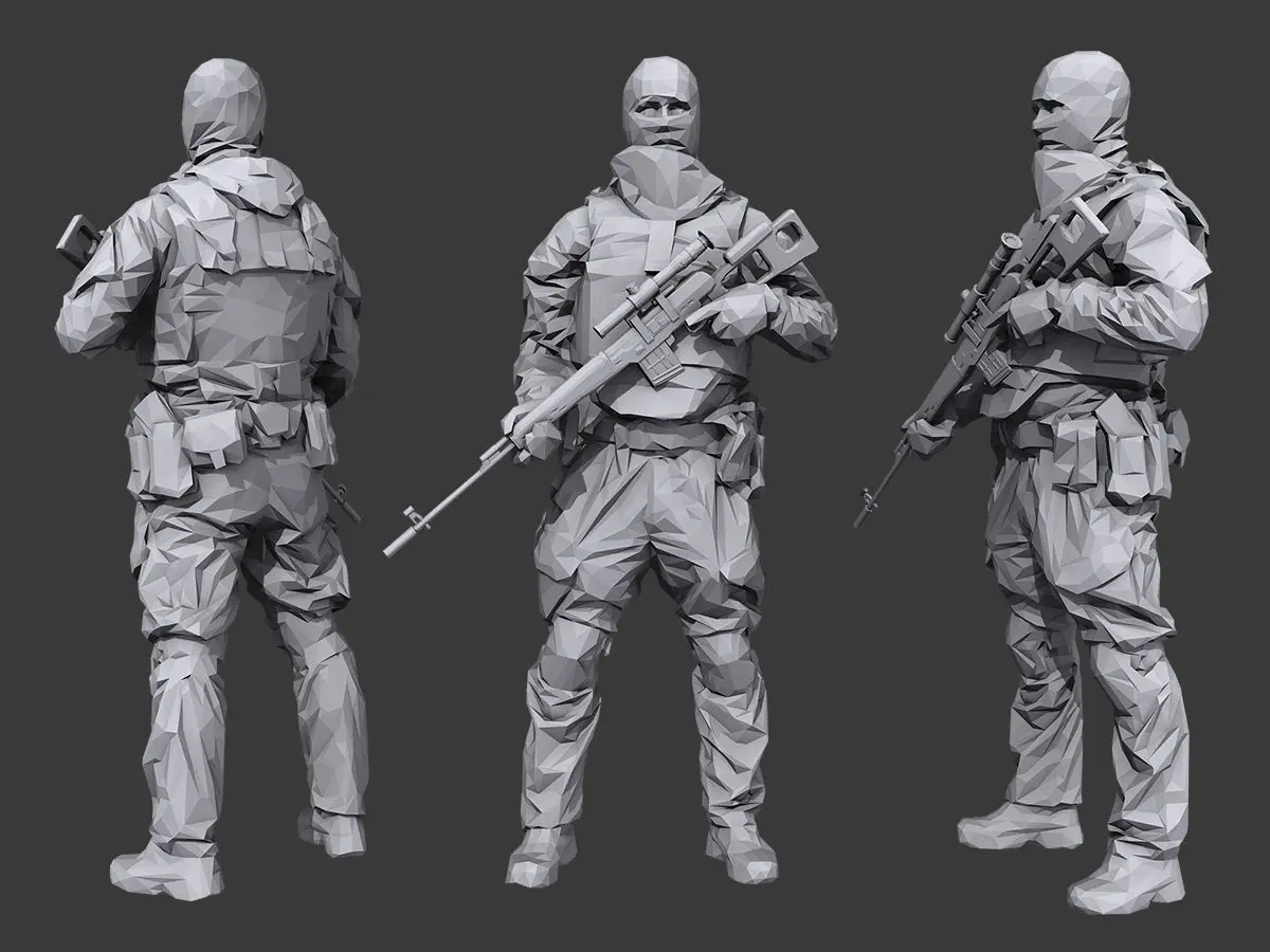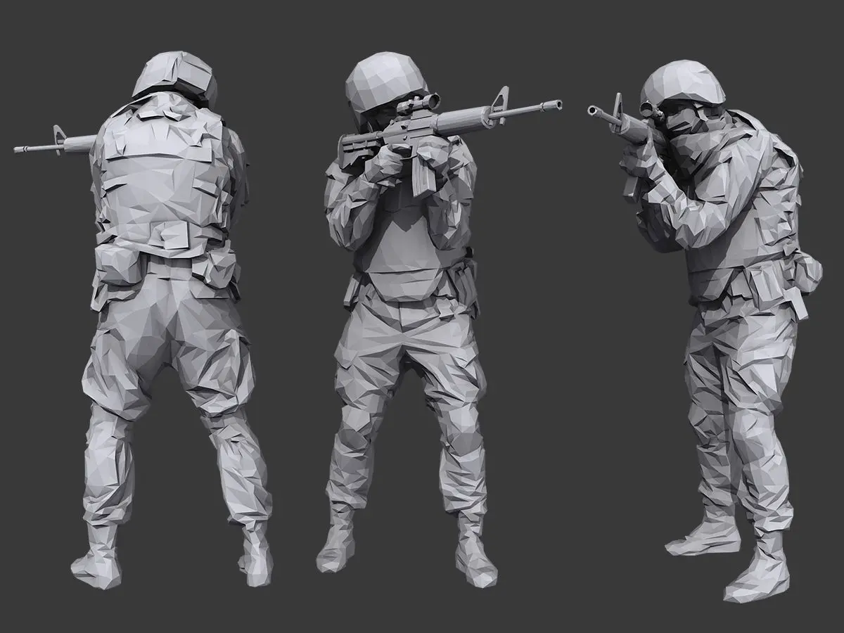Contains 7 lowpoly special forces characters models. 6000-6500 polygons per model.
