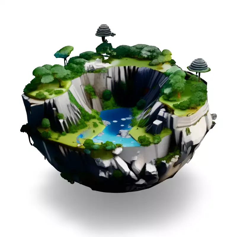This low-poly 3D model represents a unique spherical island featuring a central lake, lush vegetation, rocky cliffs, and futuristic structures. Ideal for game development, especially stylized or mobile games, architectural visualization, AR/VR experiences, and digital art projects. Available in multiple formats, including GLB, OBJ, FBX, and STL, ensuring compatibility with various software. Optimized for real-time applications with a low-poly count, yet retaining appealing visual detail. Key features include clean topology, UV unwrapped meshes, and PBR textures, ready for integration into your projects. The model is also suitable for 3D printing, allowing for physical realization of this imaginative landscape. Whether you're crafting a virtual world or a tangible object, this spherical island model offers a distinctive and versatile asset. This model is ready to be imported into your preferred 3D application and utilized for your creative endeavors.