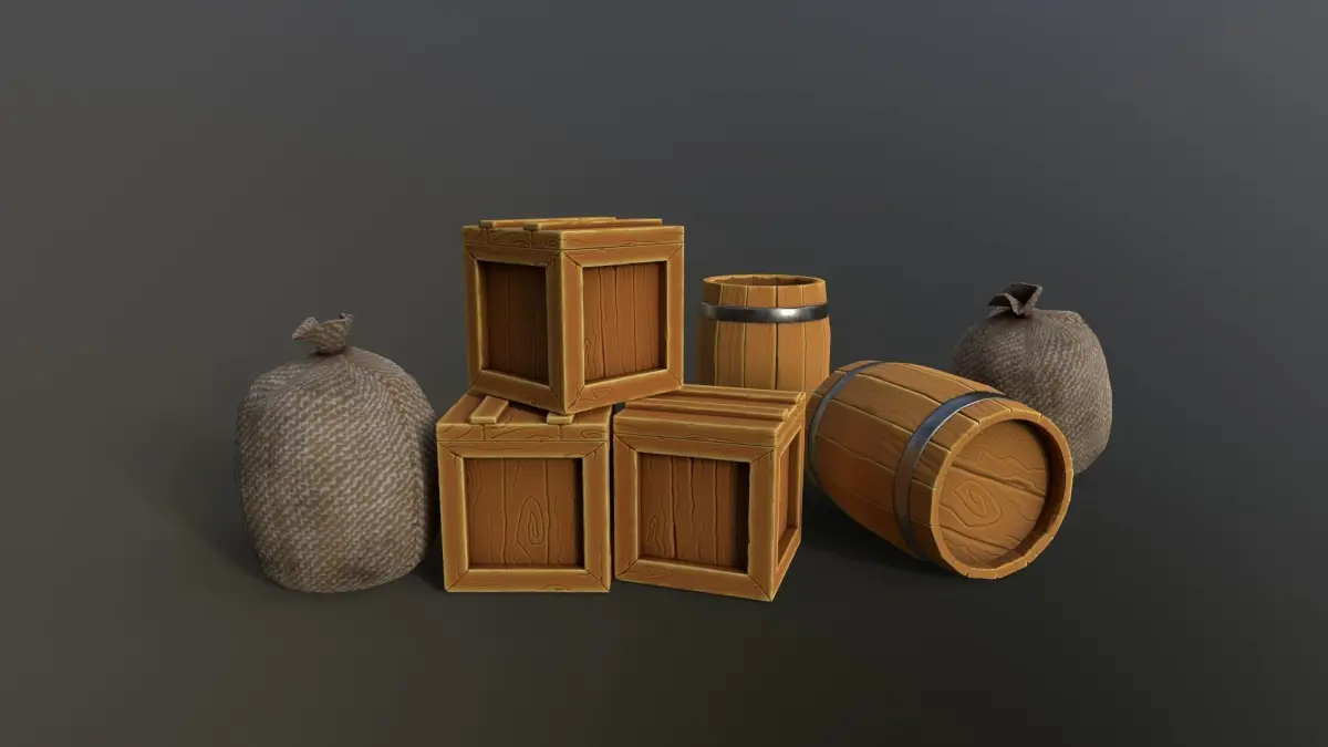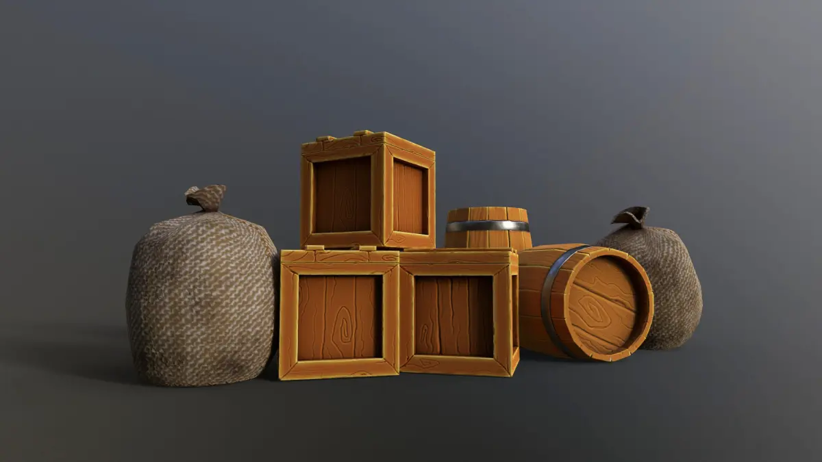 Handpaited stylized game asset, low poly containers in cartoonish style. Ready for gamedev. Every prop has a separated 2K .png textures. Barrel: albedo, normal, metalness and roughness Box and Sack: albedo and normal. Normal Maps are OpenGL. Check my profile for more stylized props and wright to me if you have any questions.