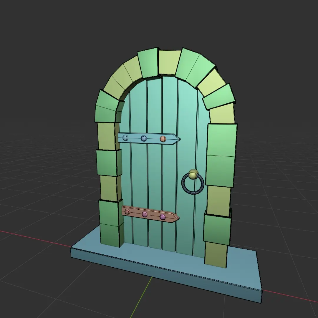 I will create a lowpoly stylized door in blender 4.1 version and render it in cycle 128 sample. Clean topology. i never used any third party addon's vertices 4759faces 4679please open zip file for texture i will used pbr texture