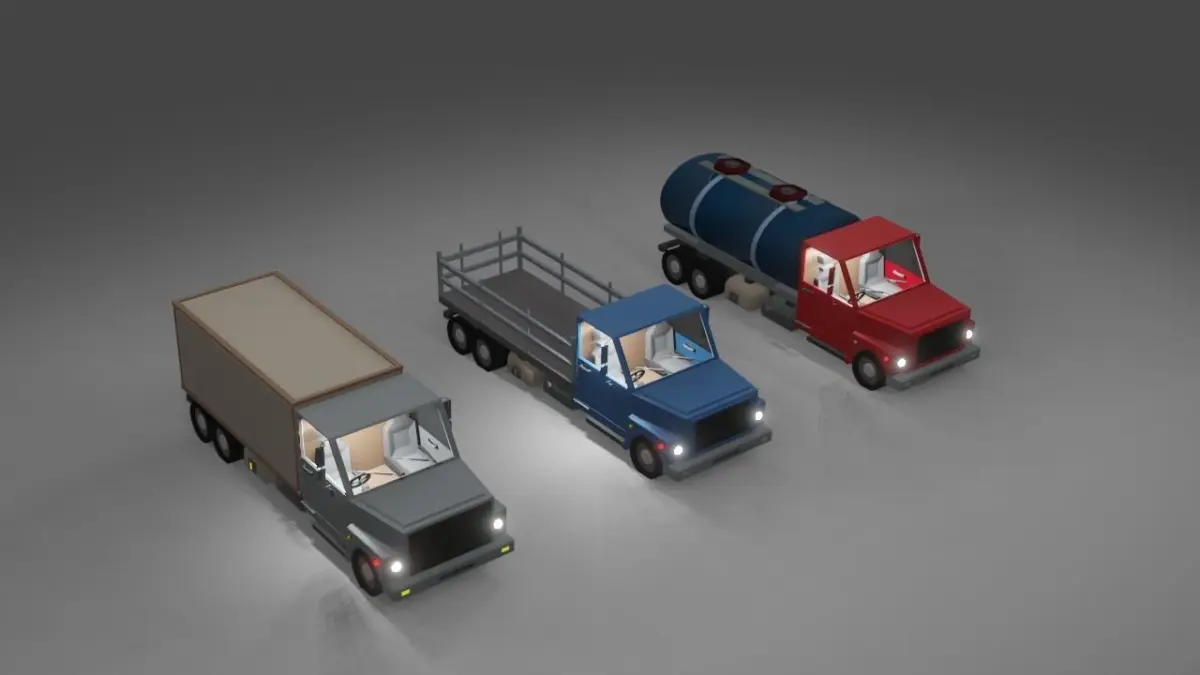 Truck lowpoly models made in blender for making PC and Mobile games.Specially design for truck racing games, off road 4x4 racing games, cargo games, and truck transport games.lowpoly models compatible with unity android, ios and unreal engine.there are 3 different trucks made with blender.